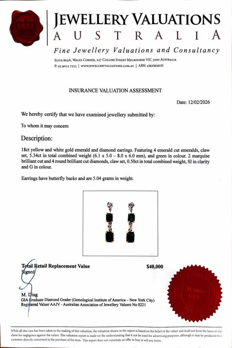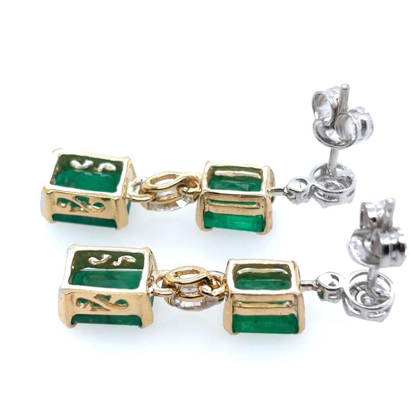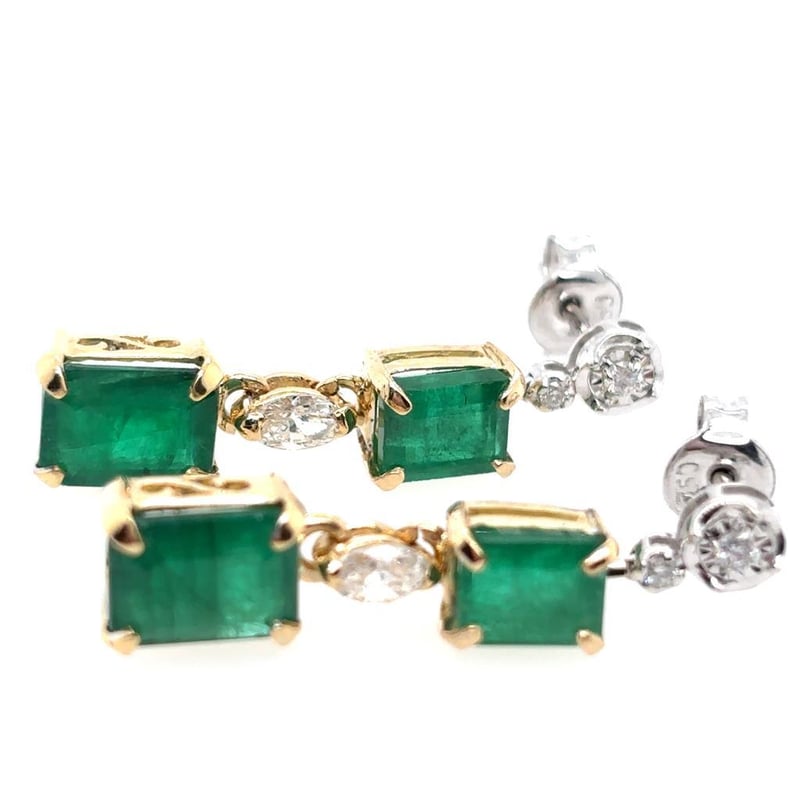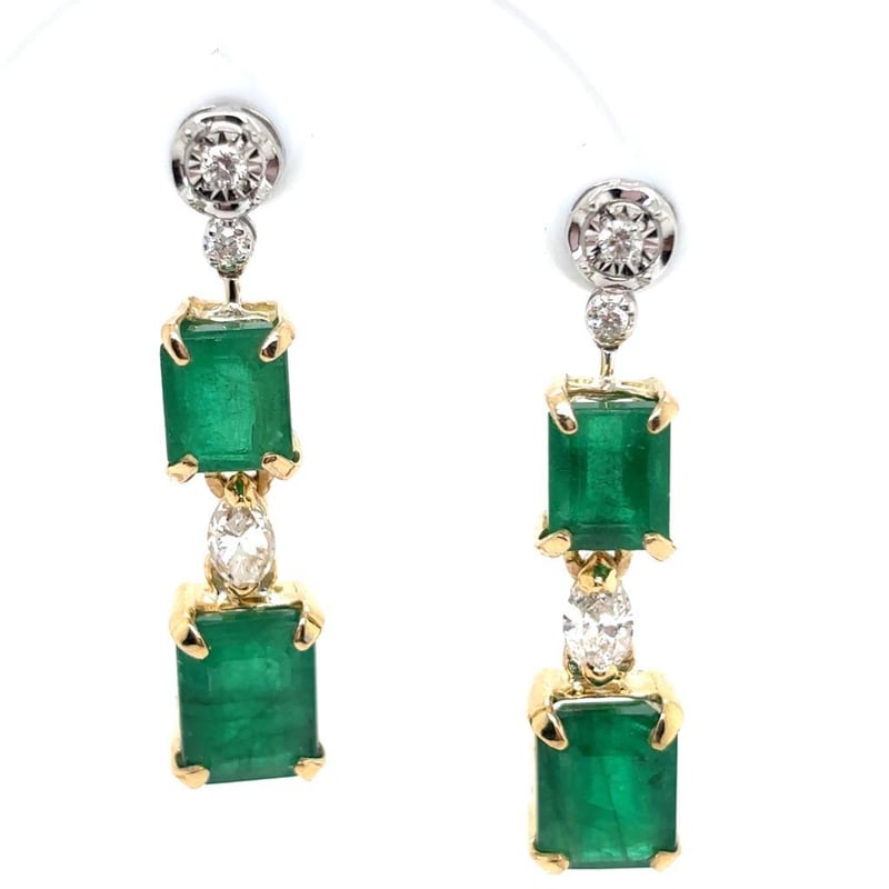 18CT YELLOW AND WHITE GOLD EMERALD AND DIAMOND EARRINGS