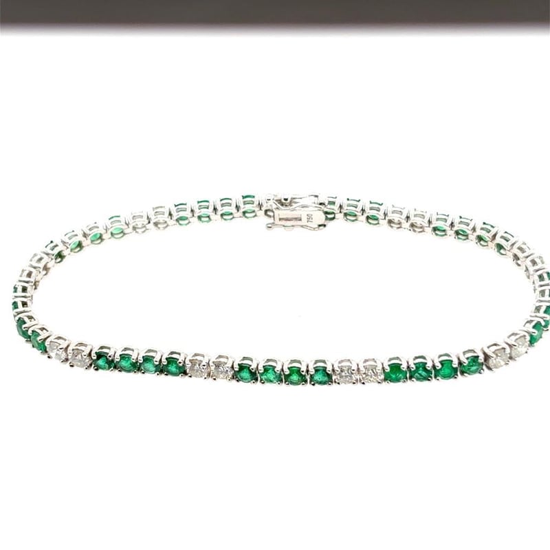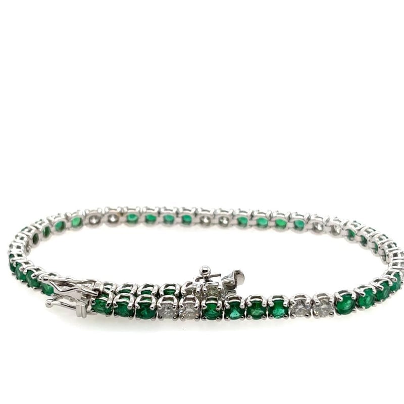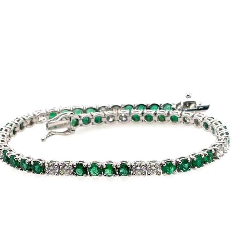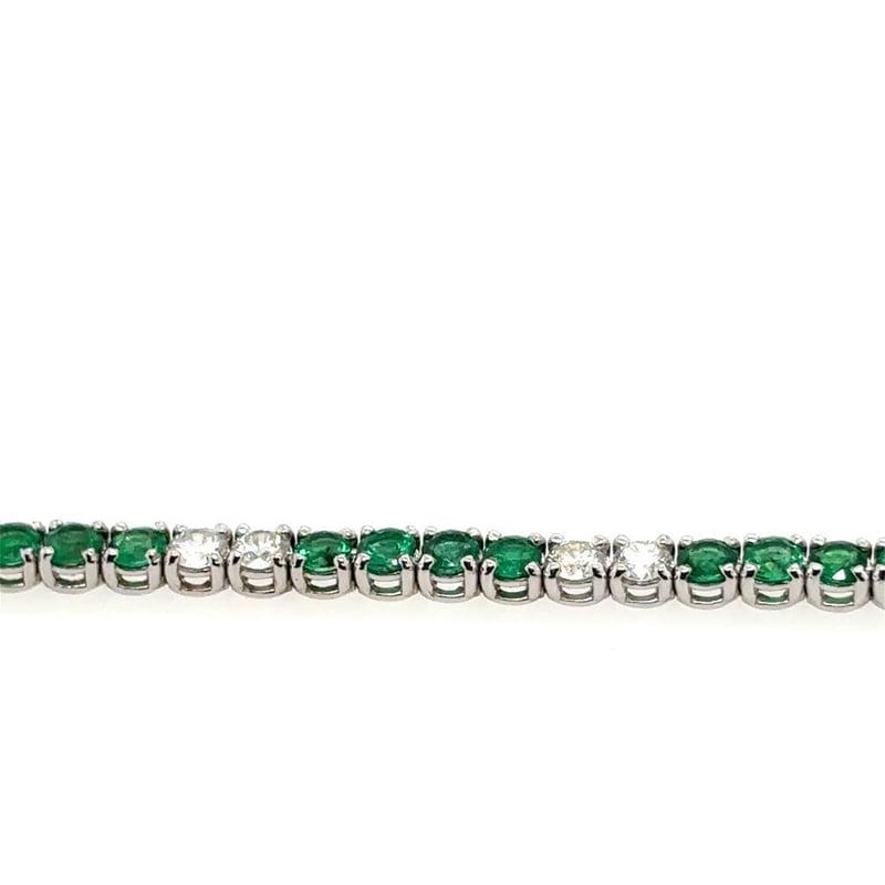 18CT WHITE GOLD EMERALD AND DIAMOND TENNIS BRACELET
