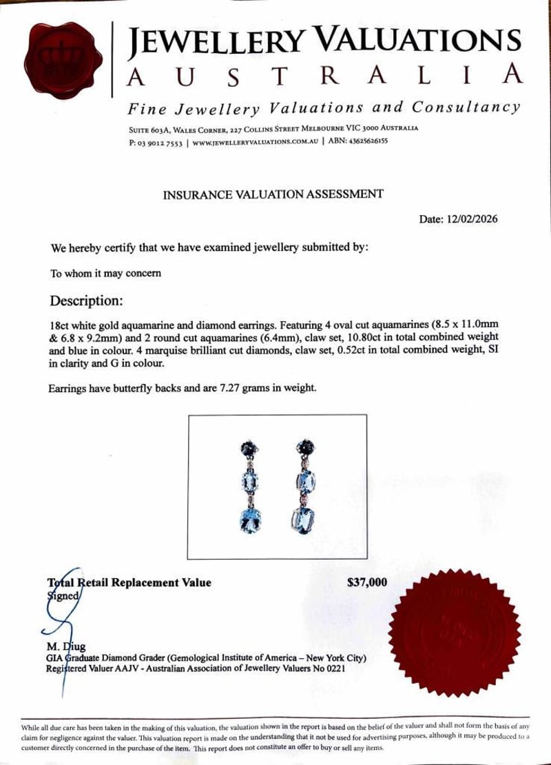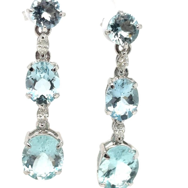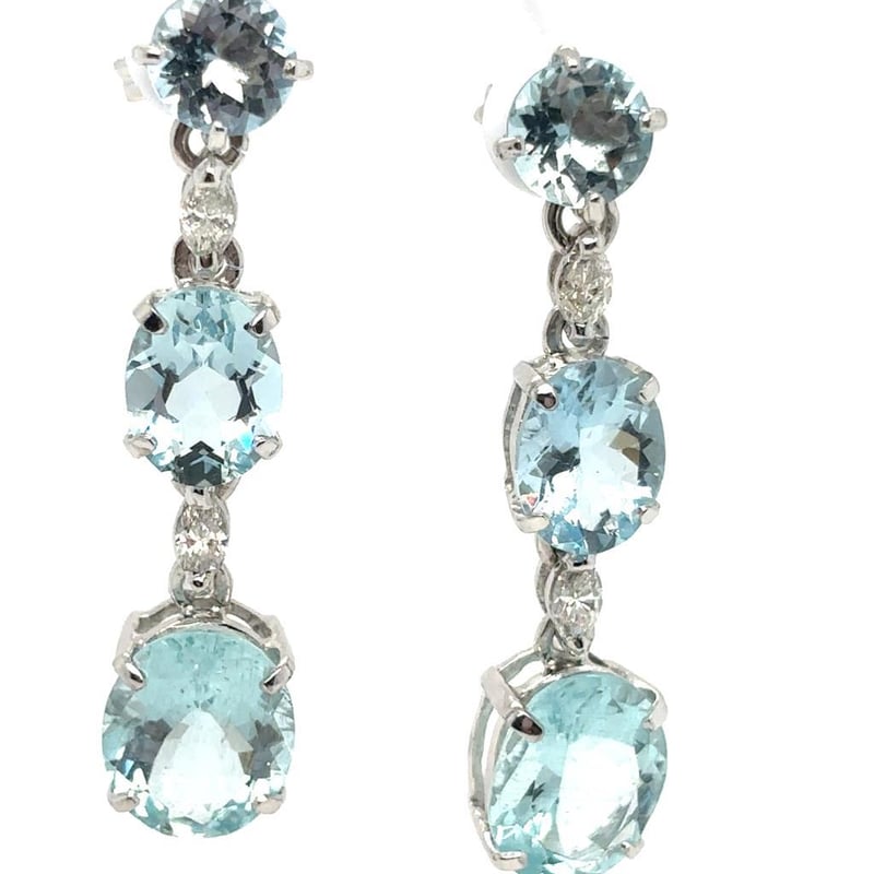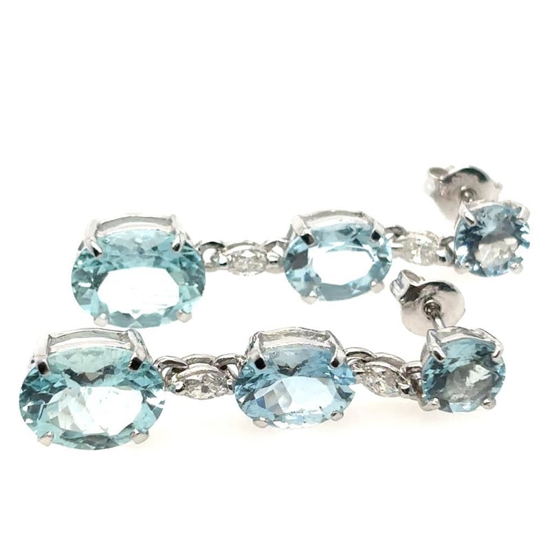18CT WHITE GOLD AQUAMARINE AND DIAMOND EARRINGS