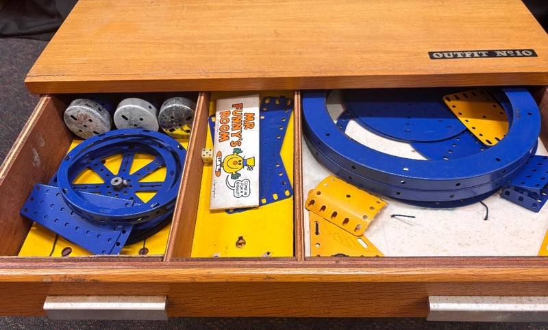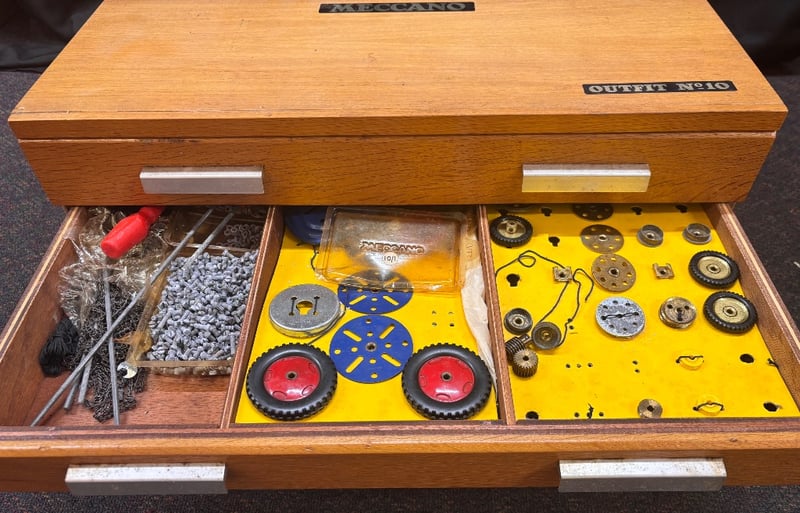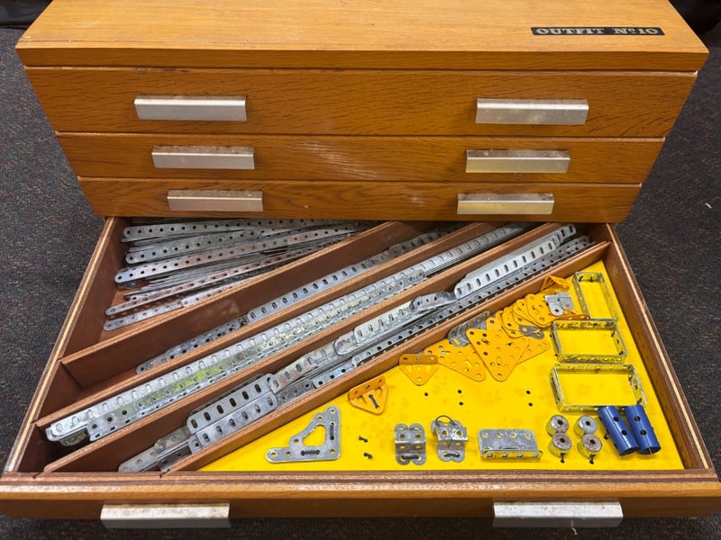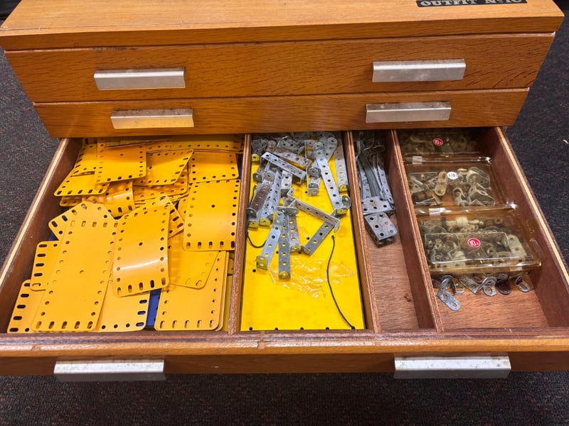Note; Wooden Drawer Cabinet, Containing Numerous Meccano Parts.