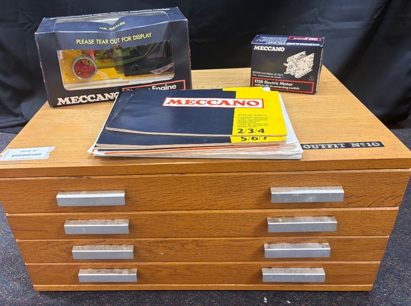 MECCANO OUTFIT NO. 10 WITH INSTRUCTIONS, MECCANO STEAM ENGINE AND MECCANO ELETRIC MOTOR