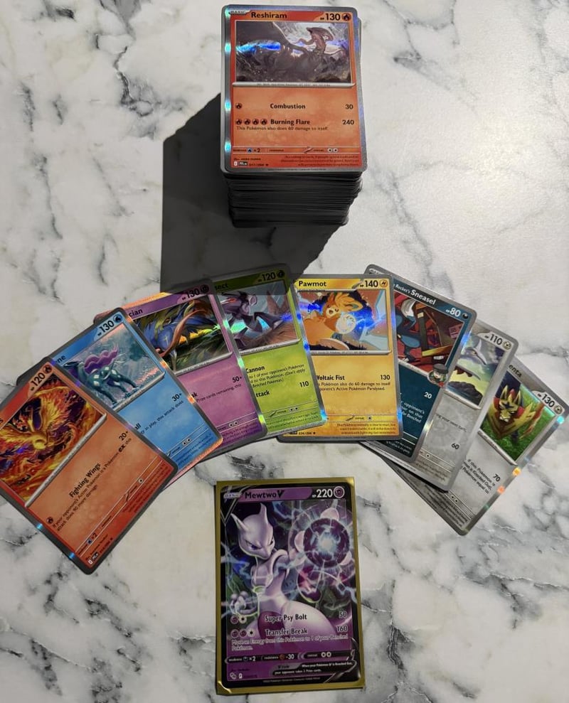 ASSORTED BULK POKEMON CARDS INCLUDING HOLOS, V & MORE.