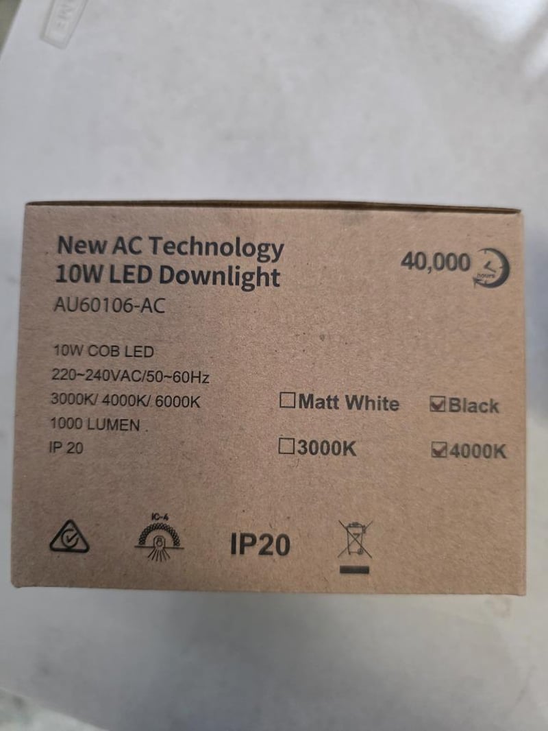 RRP $1,240 Combined, Vertex 10W LED Downlight 4000K 90mm Anti Glare BlackQTY: 20pcsMODEL: CS-OP-AU60106-AC-BL-10W-4000KPRODUCT DIMENSIONS: 104mm x 60mm
