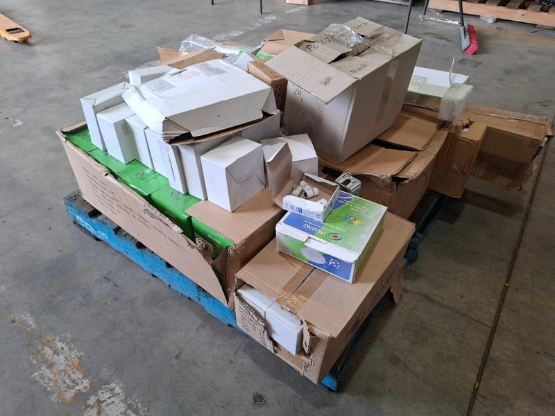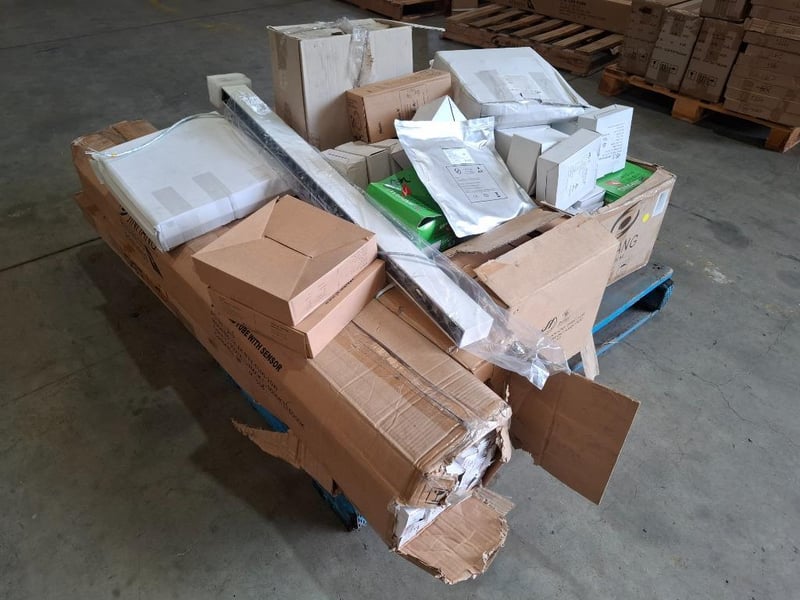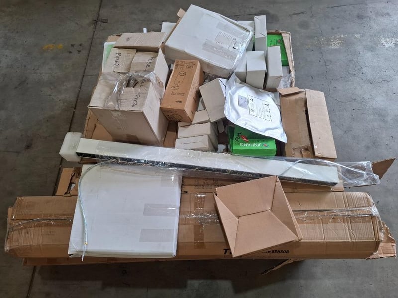 Assorted Pallet Of Electrical Components Consisting Of Lights, Switches, Switch Plates, And Plugs.Models Include: CS310CS-JH-FL6-50W-GREY-6500K-CLEARJH-CBD03-1224D-CCTNote: Contents Sold Together As One Lot.Inspection Recommended Prior To Bidding.