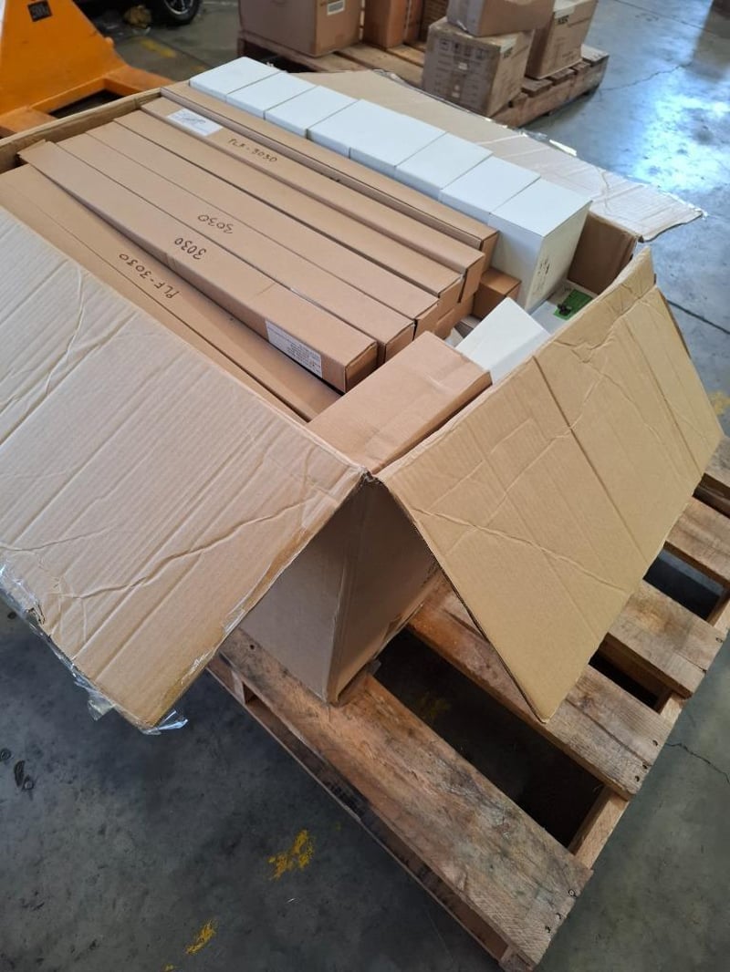 Assorted box Of Electrical Components Consisting Of Lights, Switches, Switch Plates, And Plugs.Models Include: PLF-3030JH-SWL1-V2-12W-MICLG-10WNote: Contents Sold Together As One Lot.Inspection Recommended Prior To Bidding.