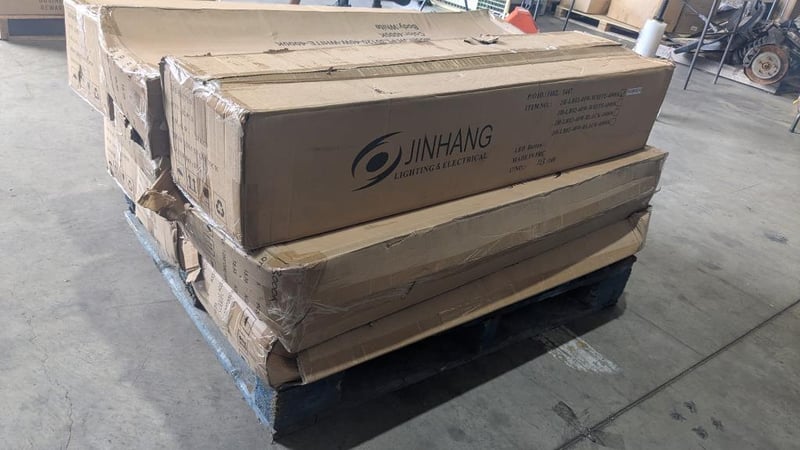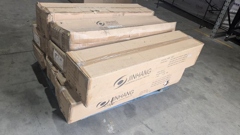 Assorted Pallet Of Electrical Components Consisting Of Lights, Switches, Switch Plates, And Plugs.