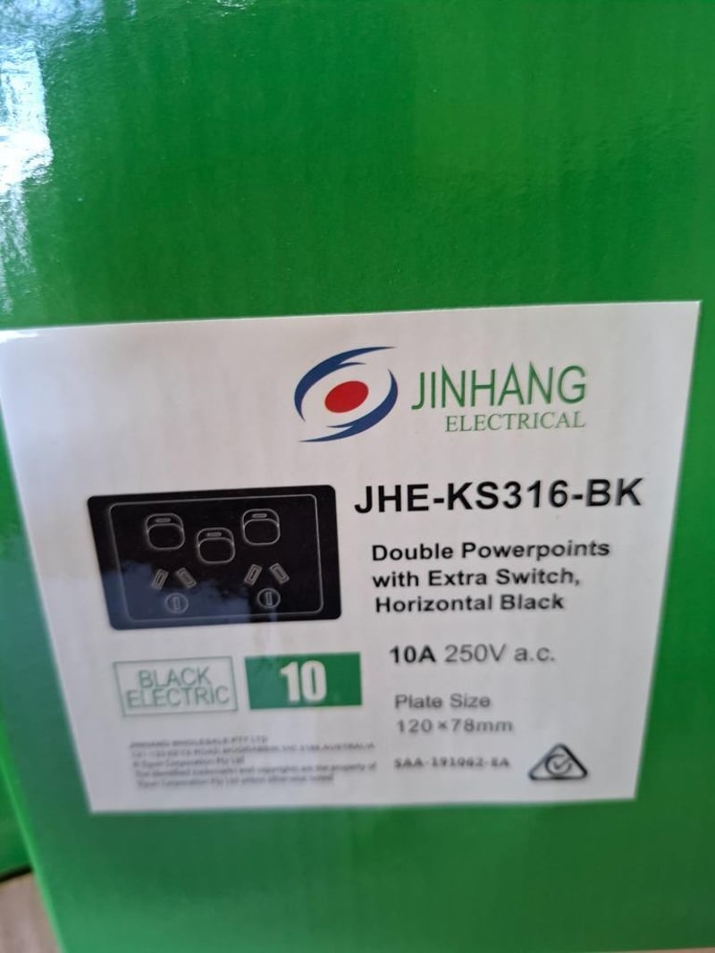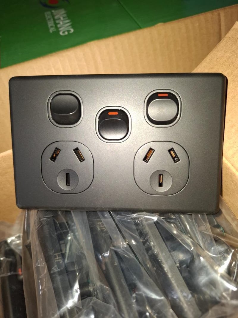 RRP $5900 Combined, 10A Double Wall Socket with Extra Switch Slim Black