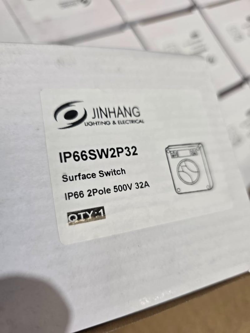 JinHang Industrial IP66 Surface Switch 2Pole 500V 32AQTY: 29pcsMODEL: IP66SW2P32PRODUCT DIMENSIONS: 110mm x 90mm