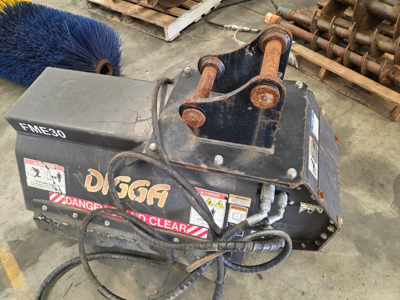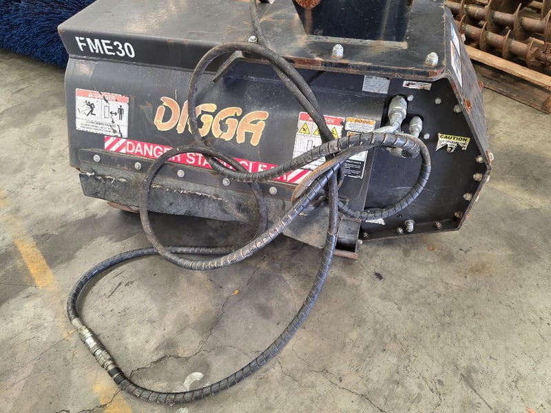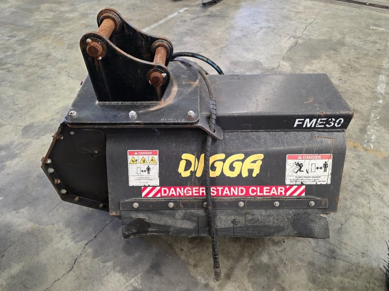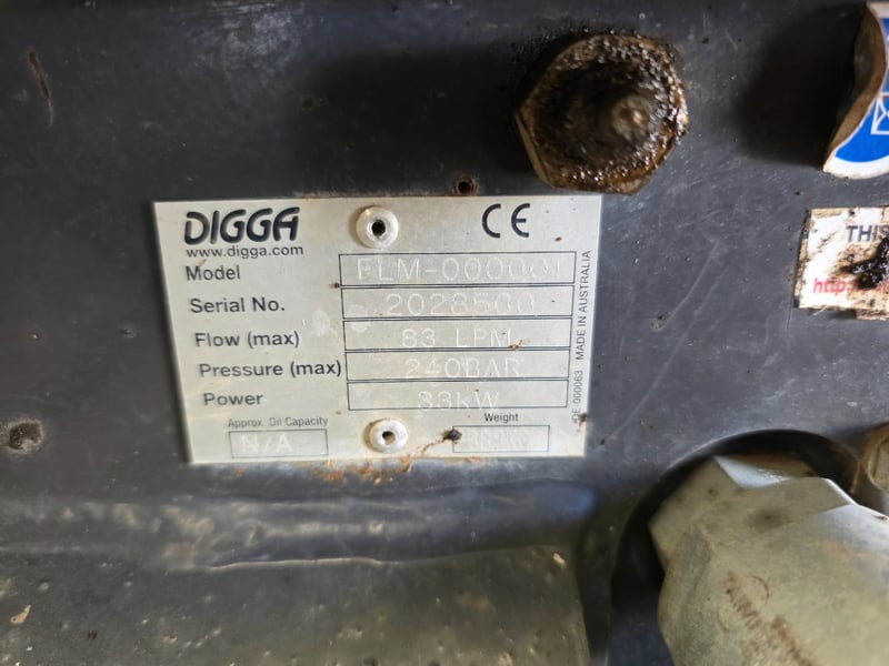 Digga Flail Mower - Excavator Attachment FME30 Make: Digga Model: FLM-000001 Serial no. 2028500 Flow (max): 83 LPM Power: 33Kw Weight: 389kg Dimensions: Between the Ears: 170mm Pin Centers: 220mm Pins: 70mm