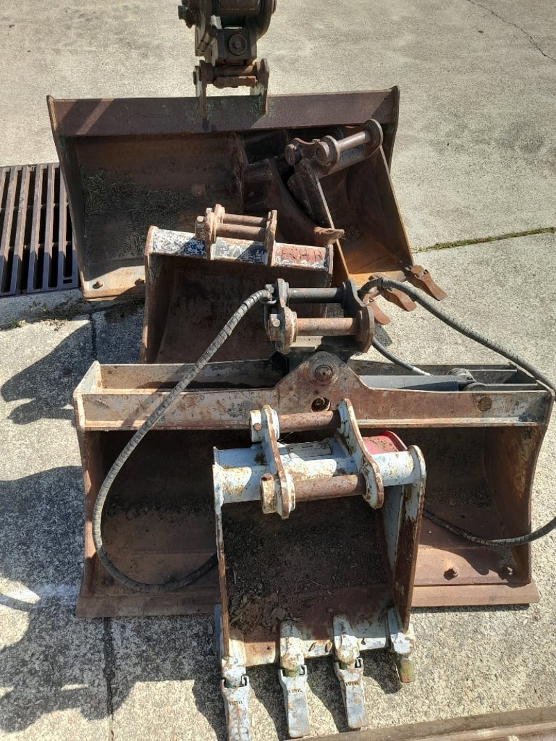 Description/Extras: Open Top Excavator, Push Blade, Includes 2 x GP Buckets, 1 x Small Mud Bucket Wirth Teeth, 1 x Trench Bucket With Teeth, 1 x Ripper