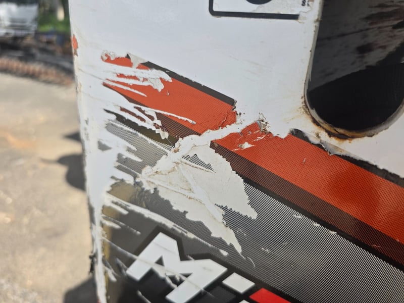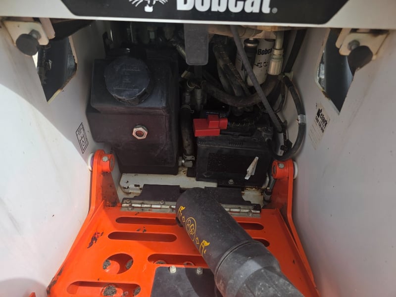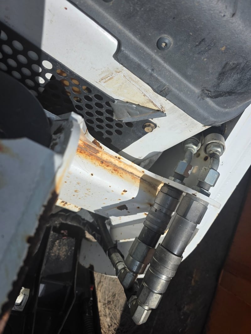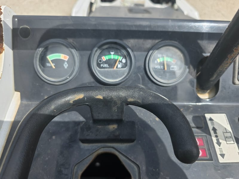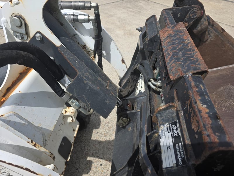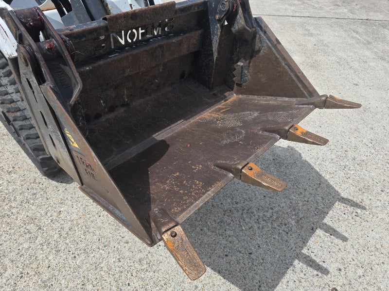 Description: Compact Mini Loader, 4in1 Norm Bucket, Piped For Auxilary Attachments, Scuffs visible, paint scratched, drives and operates.