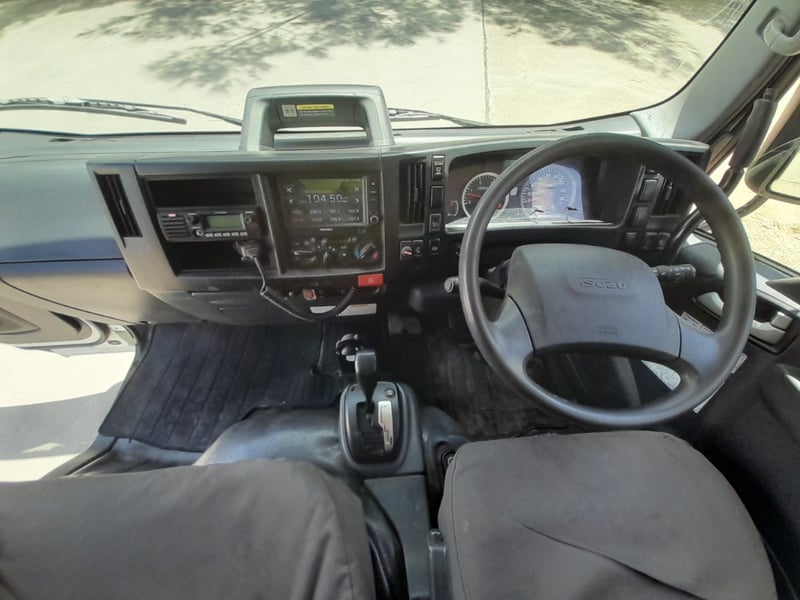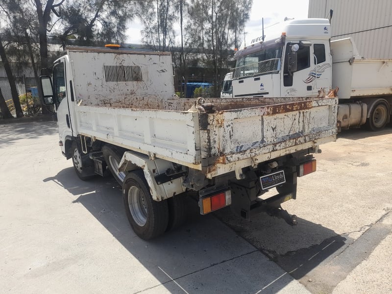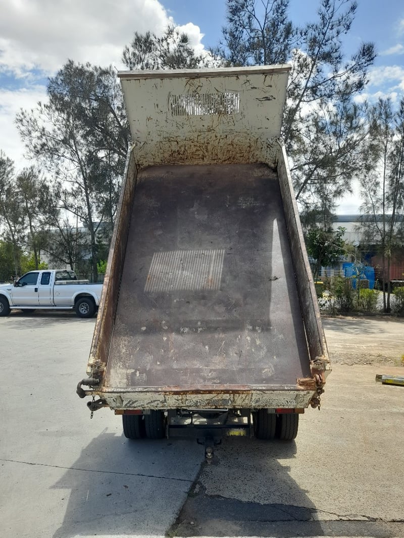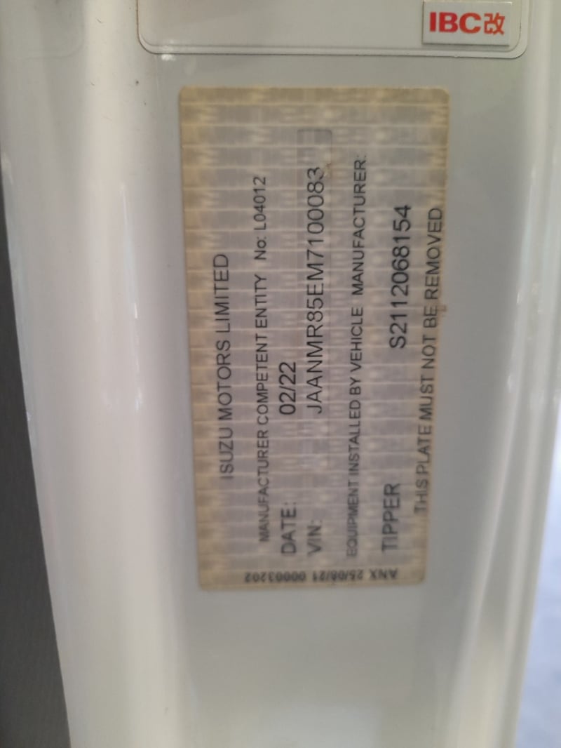Description: white mini tri tipper, 4 cylinder turbo diesel, cruise control, power windows, air con, seat covers, UHF radio, yellow beacon Isuzu media player, drink holders, hydraulic tipper PTO UHF radio, tyres are in reasonable condition, amber light