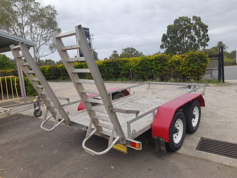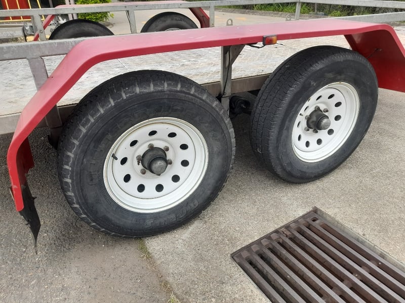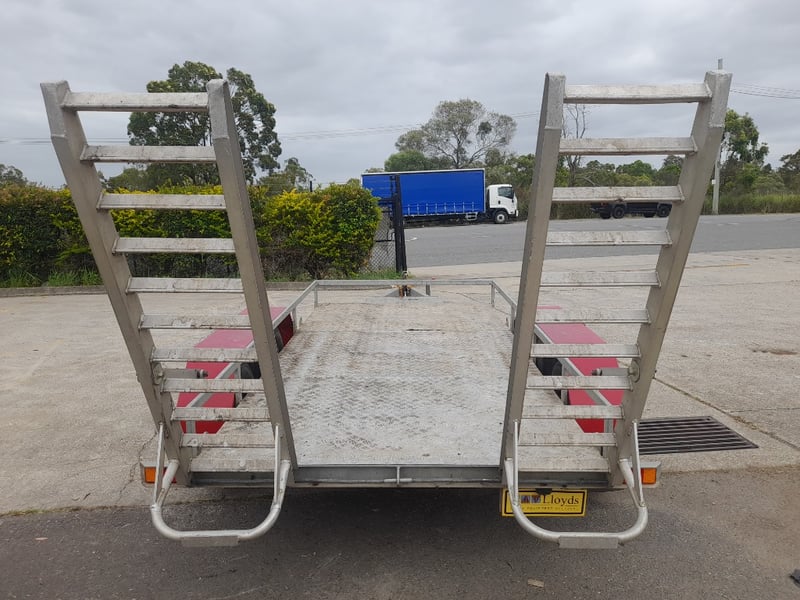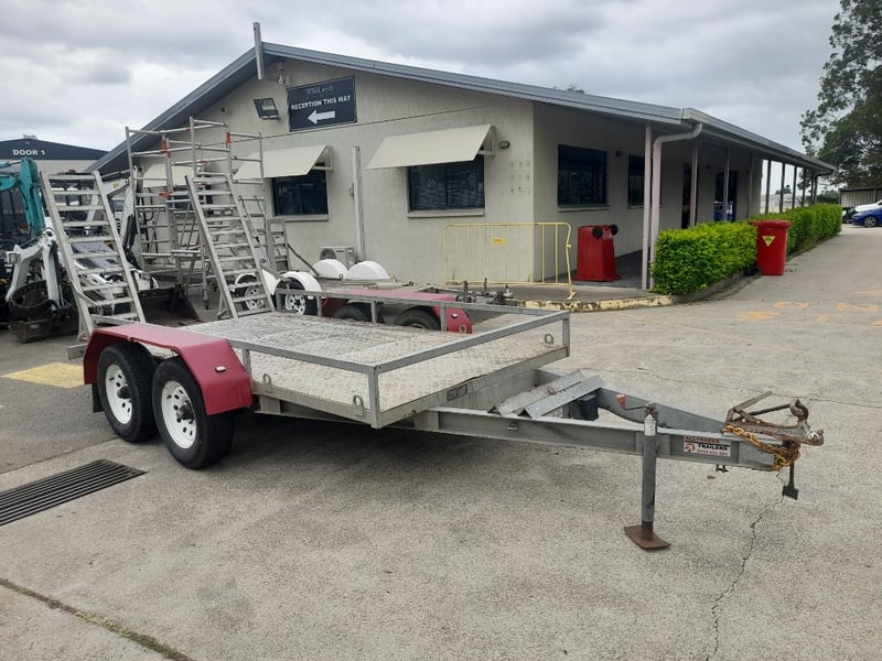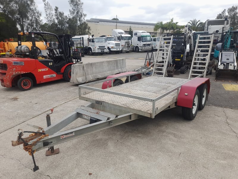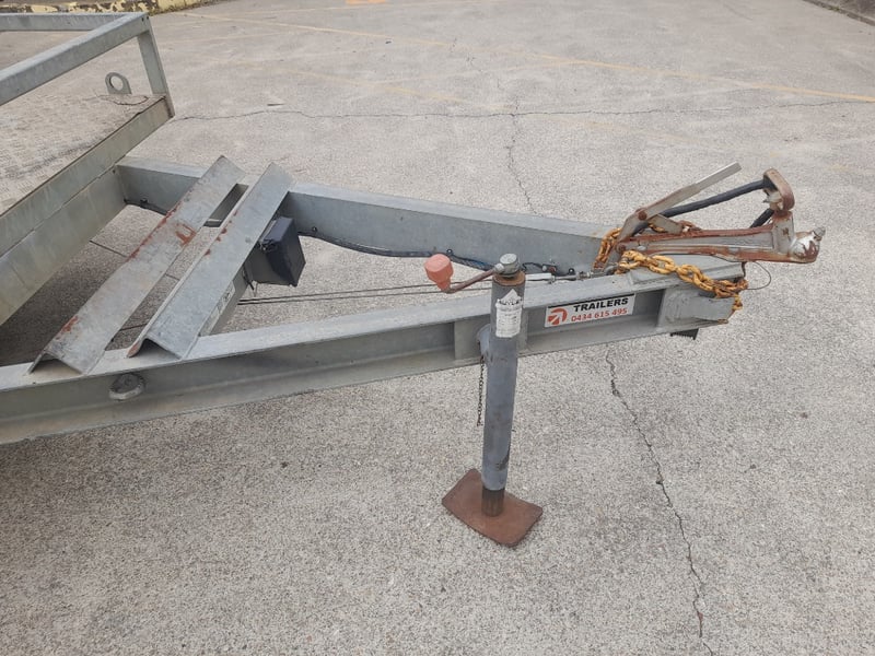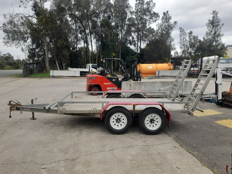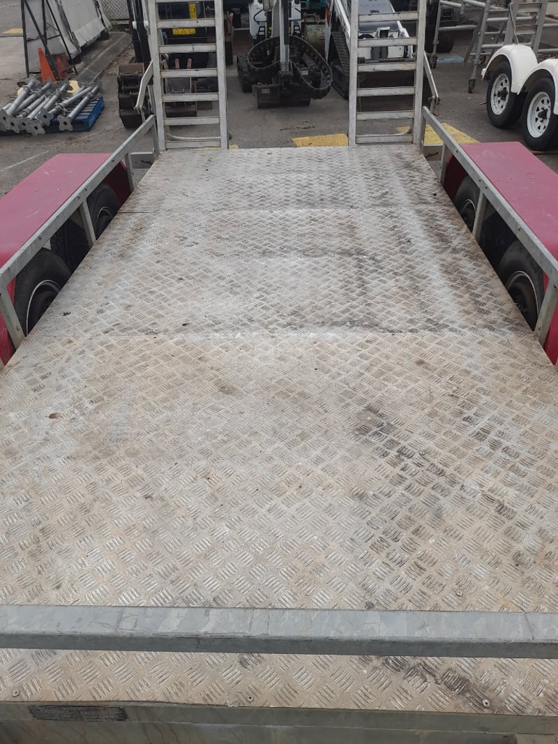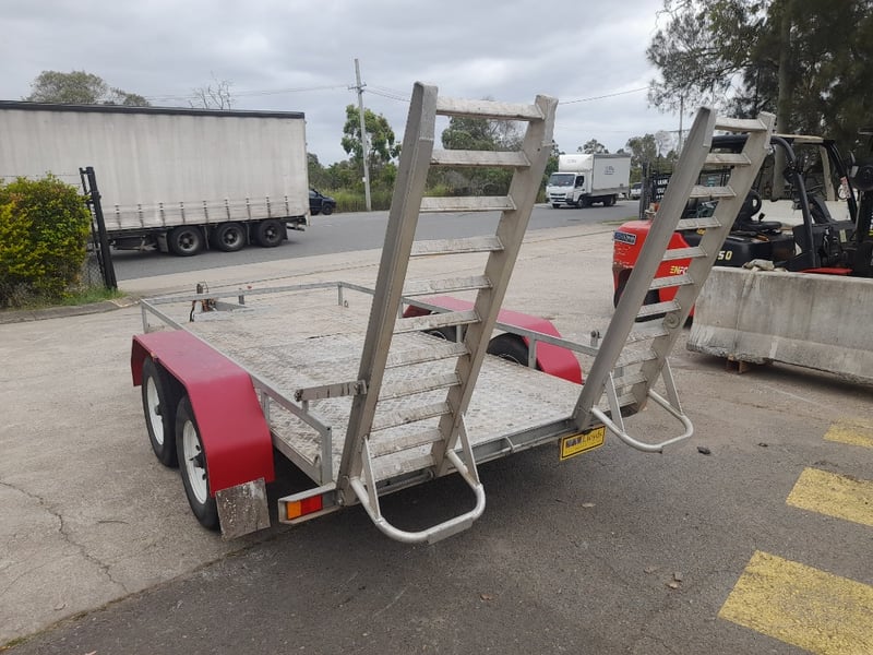 Description: Galvanised, Plant trailer, Brakes, and Hopkin brake away system, Pig tail ramps at rear of trailer, 7 pin flat lead