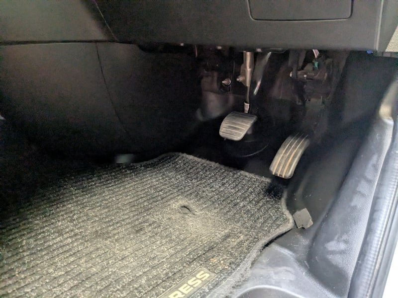 Floor mats, parking sensors, manual pull handbrake, drive modes/assists, steering wheel media controls, roof racks, rear back step, Mark's, scratches & dints, plastic pieces missing off review mirror.
