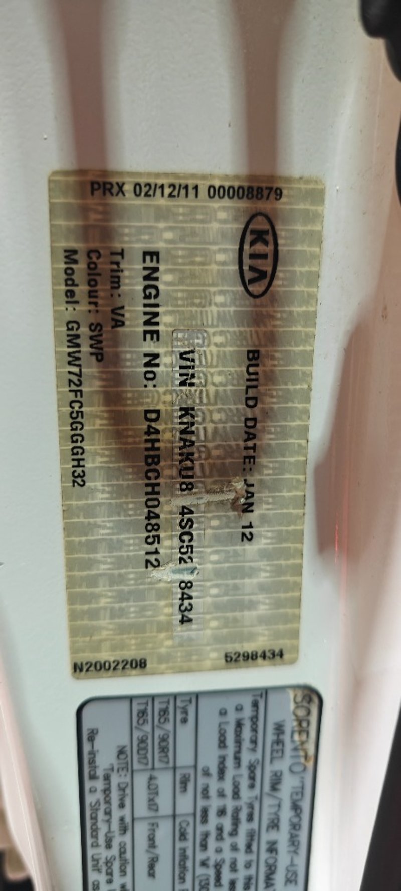 VIN: KNAKU814SC5298434