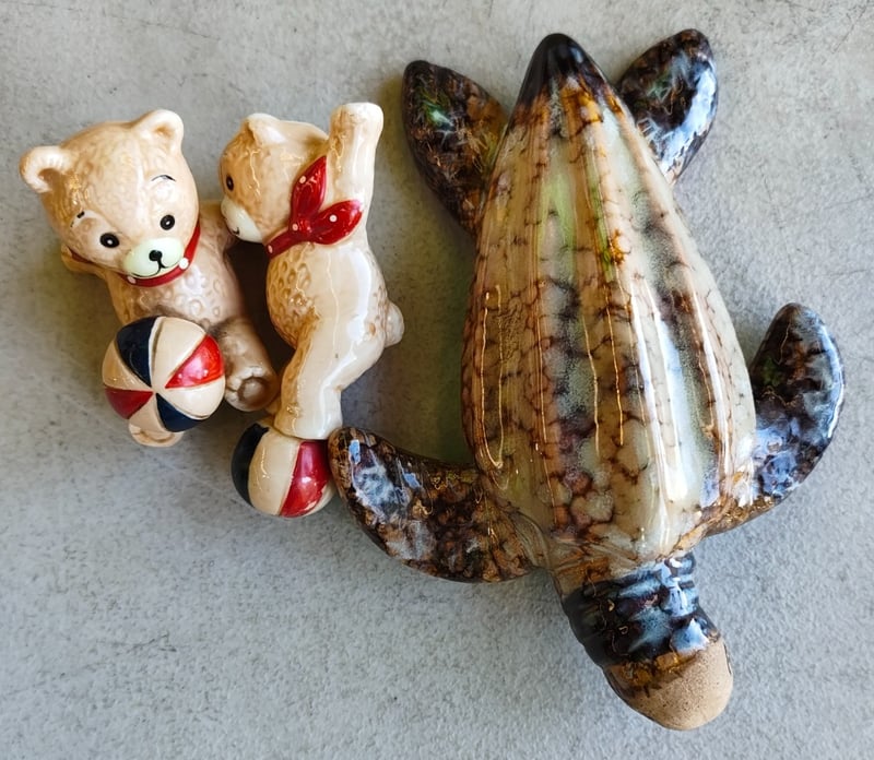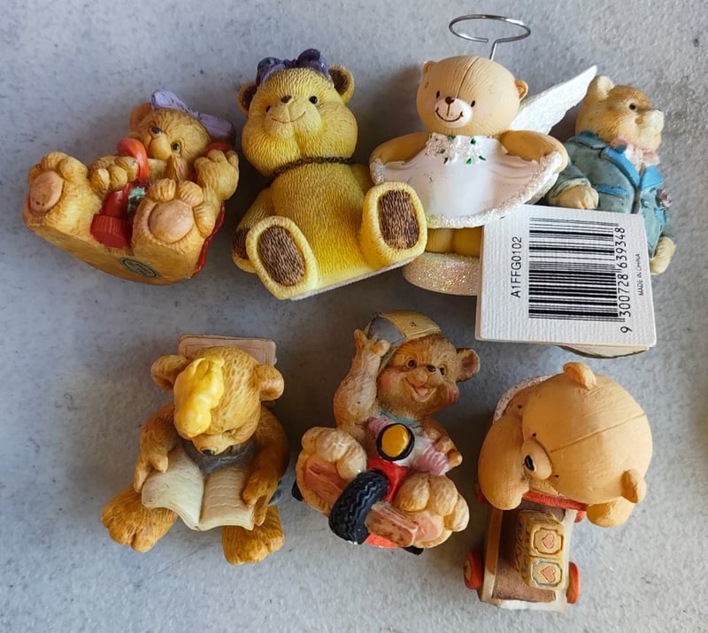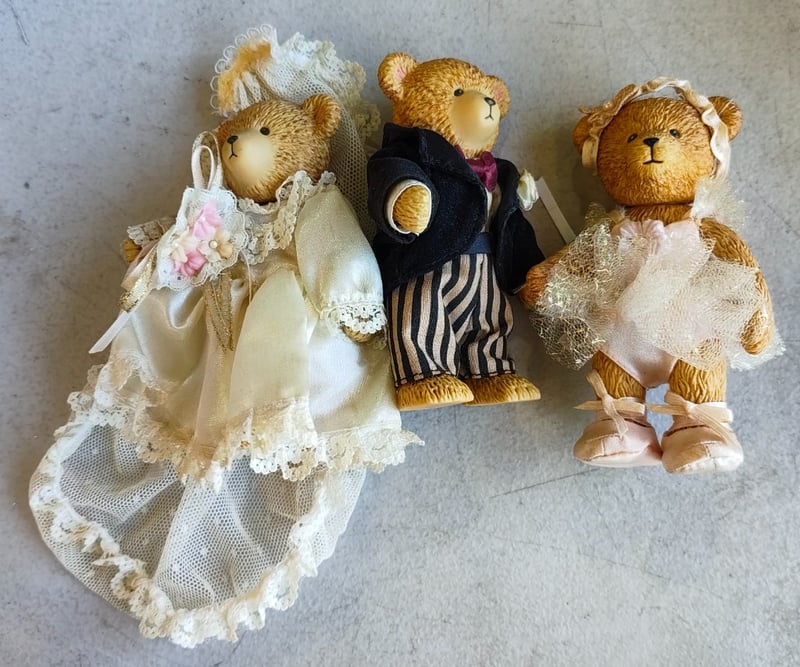 Assorted lot of glass teaware and bear dolls