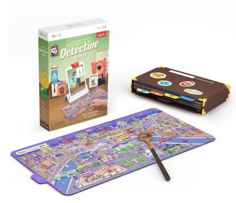RRP $95.00 RRP Total value $42,940.00 Osmo Detective Agency The Osmo Detective Agency Kids Game lets your little one to enhance their deductive thinking and observation skills as they help search for missing pets and uncover villainous thieves across 6 famous cities. Key Features Highly interactive, players inspect hundreds of clues from 4 double-sided maps with the help of their magnifying glass to solve the mystery Contains a map holder for added practicality and convenience Compatible with iPad 2-6, iPad mini 1-4, iPad Air 1-2, iPad Pro 9.7 & 10.5 inch, and with the latest Kindle Fire tablets (all not included) Requires the Osmo Base and device to be used (all sold separately) Suitable for ages 5 years + WHAT'S IN THE BOX: 4 double-sided maps, Map holder, and Magnifying glass and 1 Game App: Detective Agency