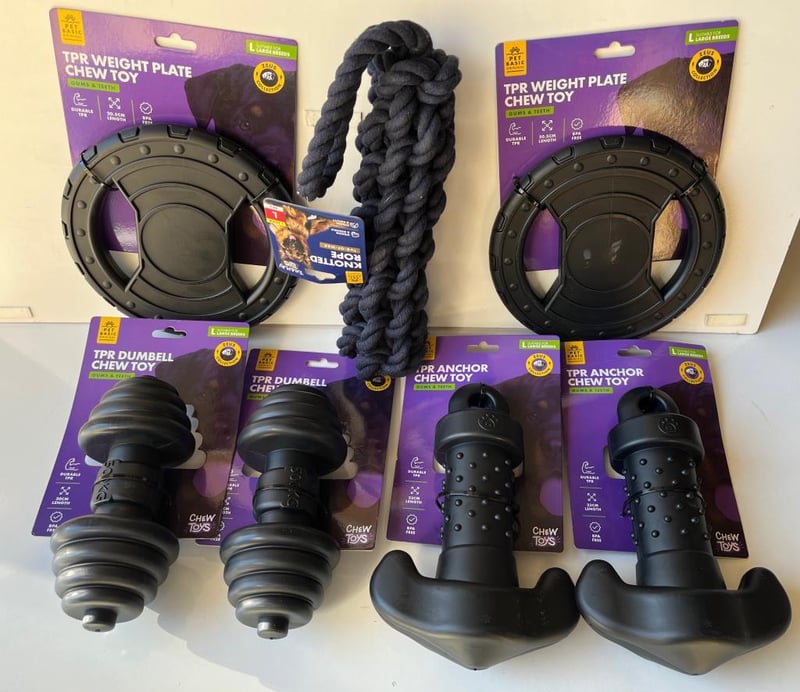 7 X Zeus Large Breed Dog Toys, Durable TPR Construction, Dental Gum and Teeth Chews brand new SOLD AS LOT
