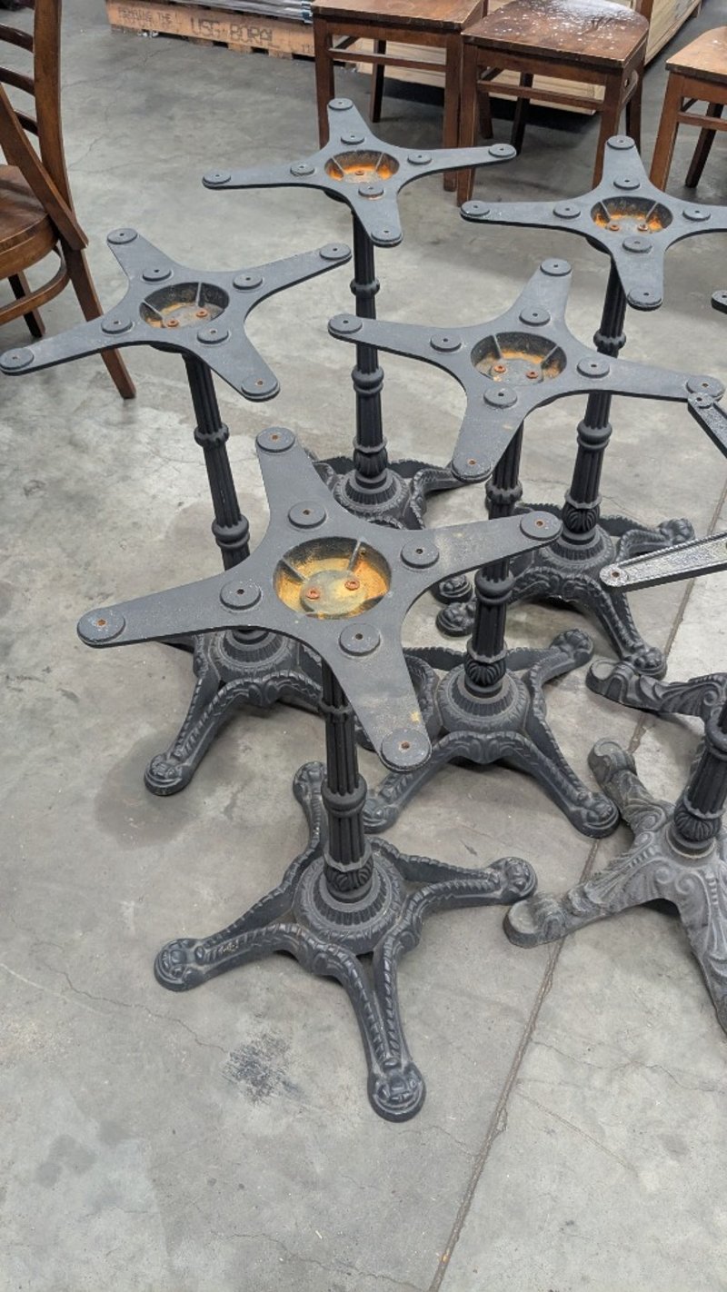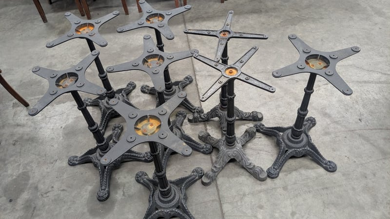 Cast Iron Table Bases, Quantity 8Dimensions:470mm(W) x 700mm(H) SOLD AS LOT NOTE: TOPS NOT INCLUDED