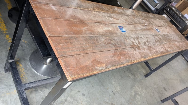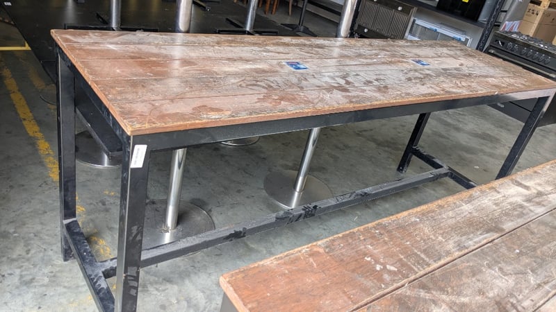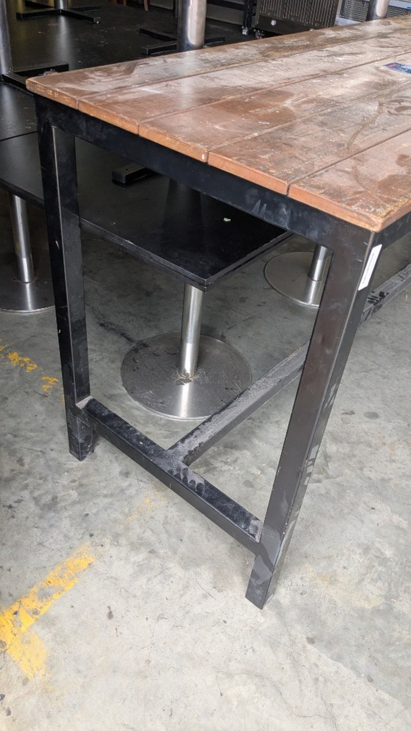 Outdoor Bar Table, Metal Frame, Medium Stained Timber Top