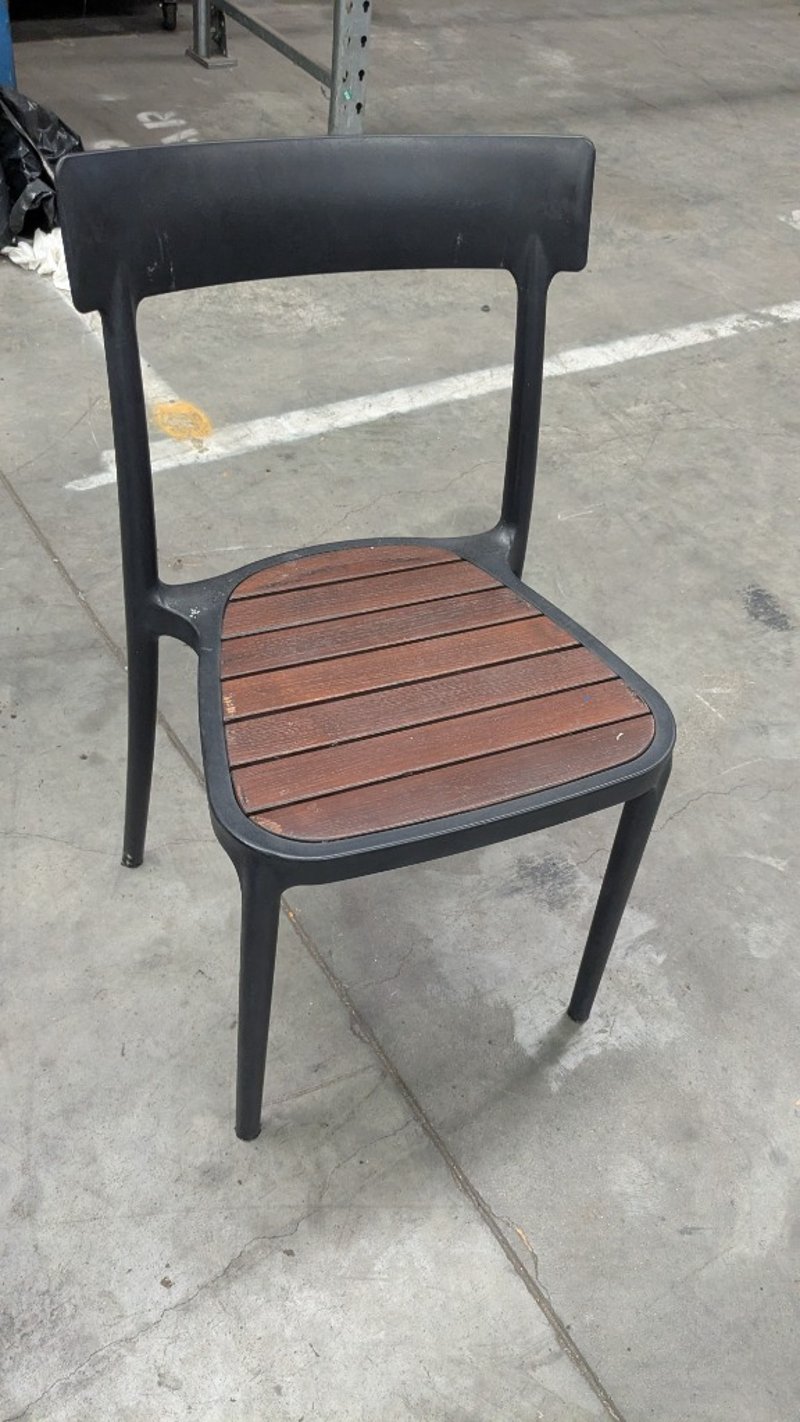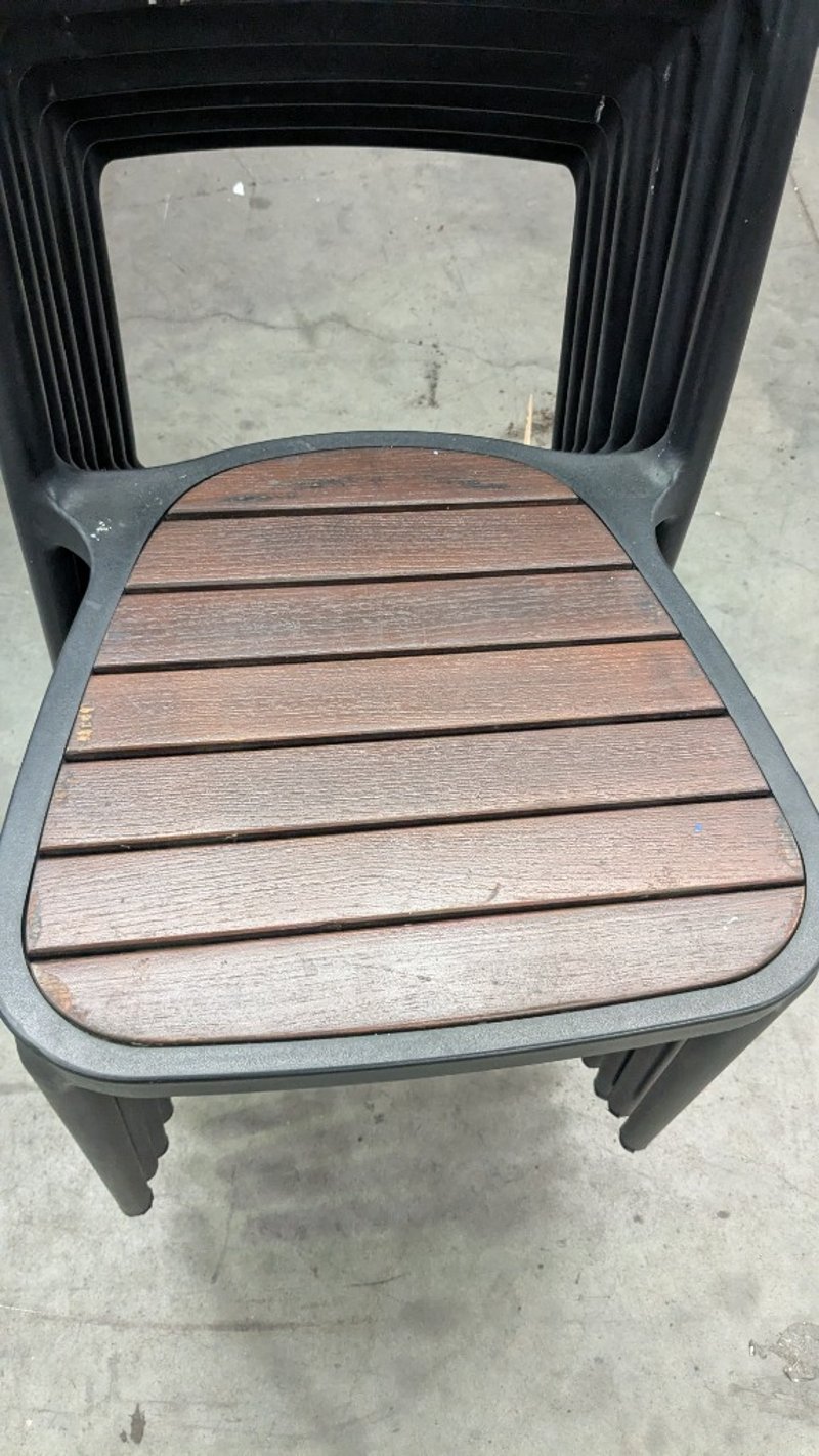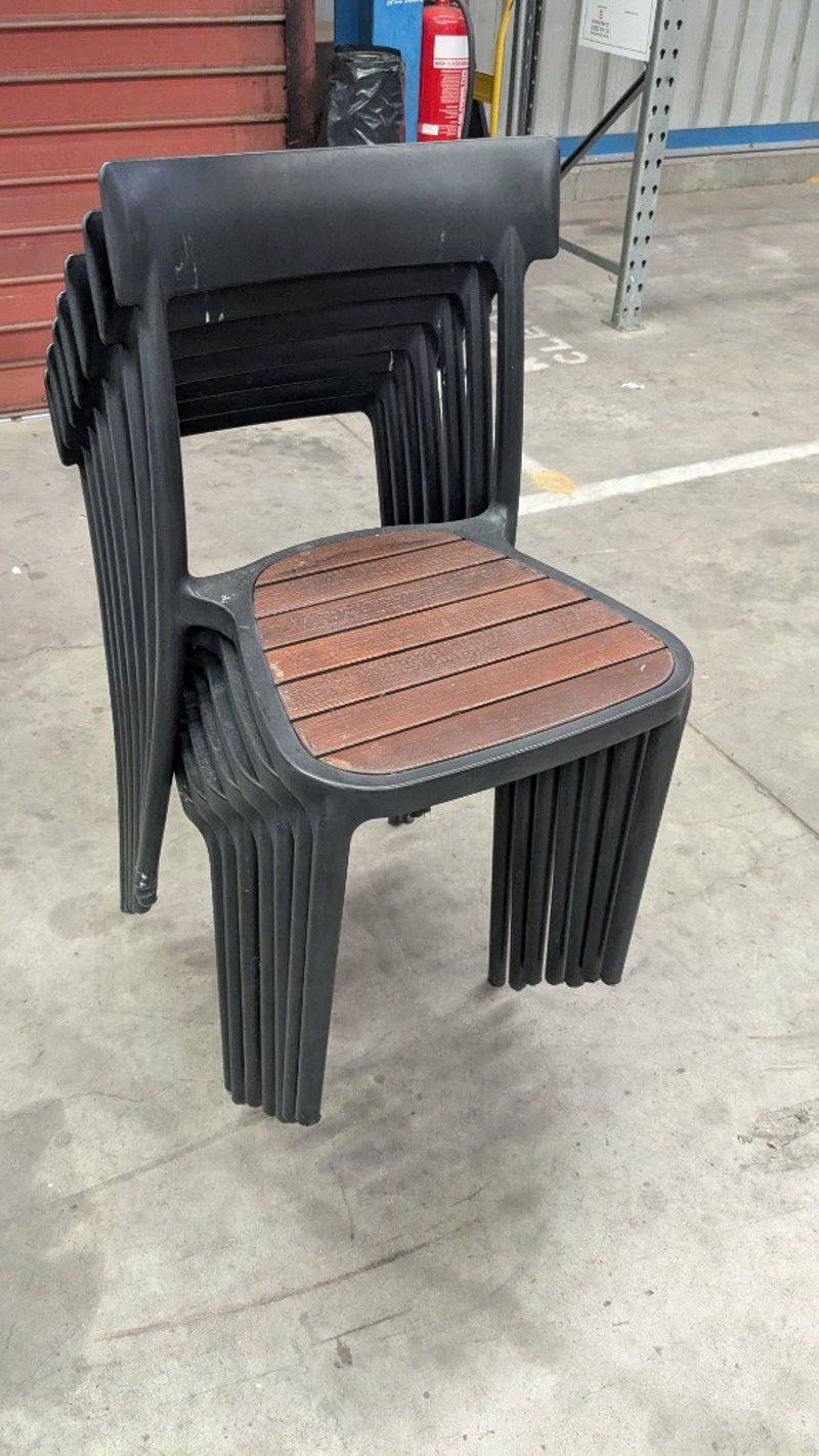 Dining Chairs, Plastic Frame, Dark Stained Timber Seat, Quantity 7