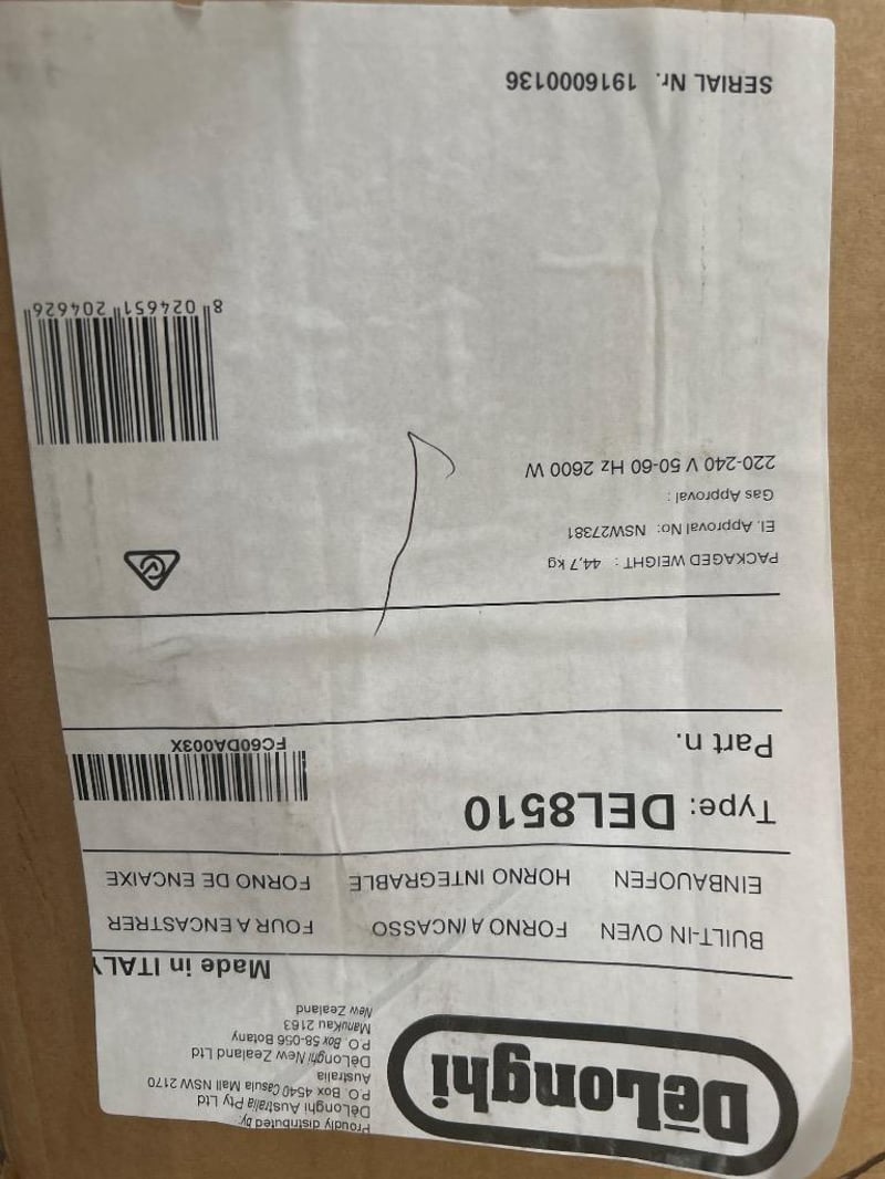 RRP; $888, DeLonghi 60cm 9 Function XXL Lifestyle Built-In Oven, model; DEL8510, stainless steel finish dimensions approx; H595 mm x W595 x D565 mm