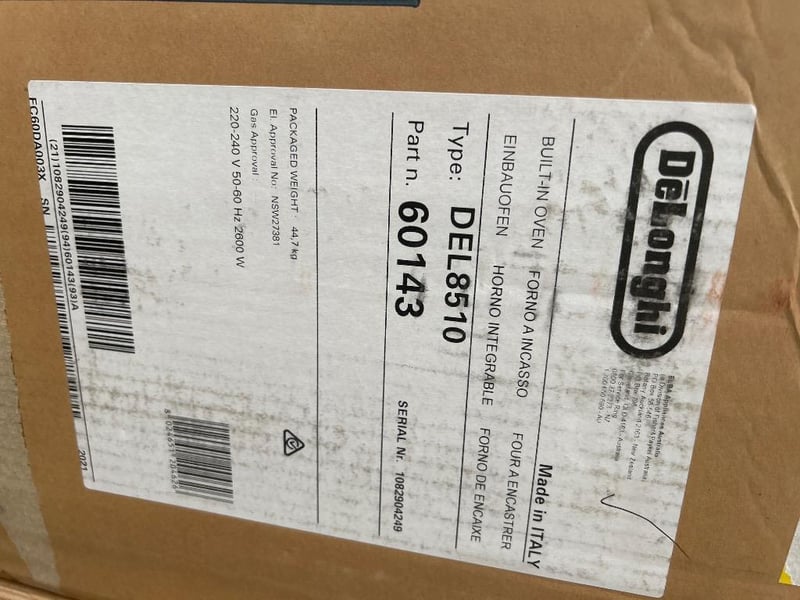 RRP; $888, DeLonghi 60cm 9 Function XXL Lifestyle Built-In Oven, model; DEL8510, stainless steel finish