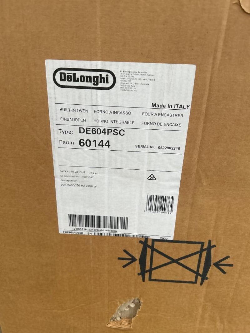 RRP; $655, Delonghi 60cm Electric Built-In Oven, model; DE604PSC, stainless steel finish
