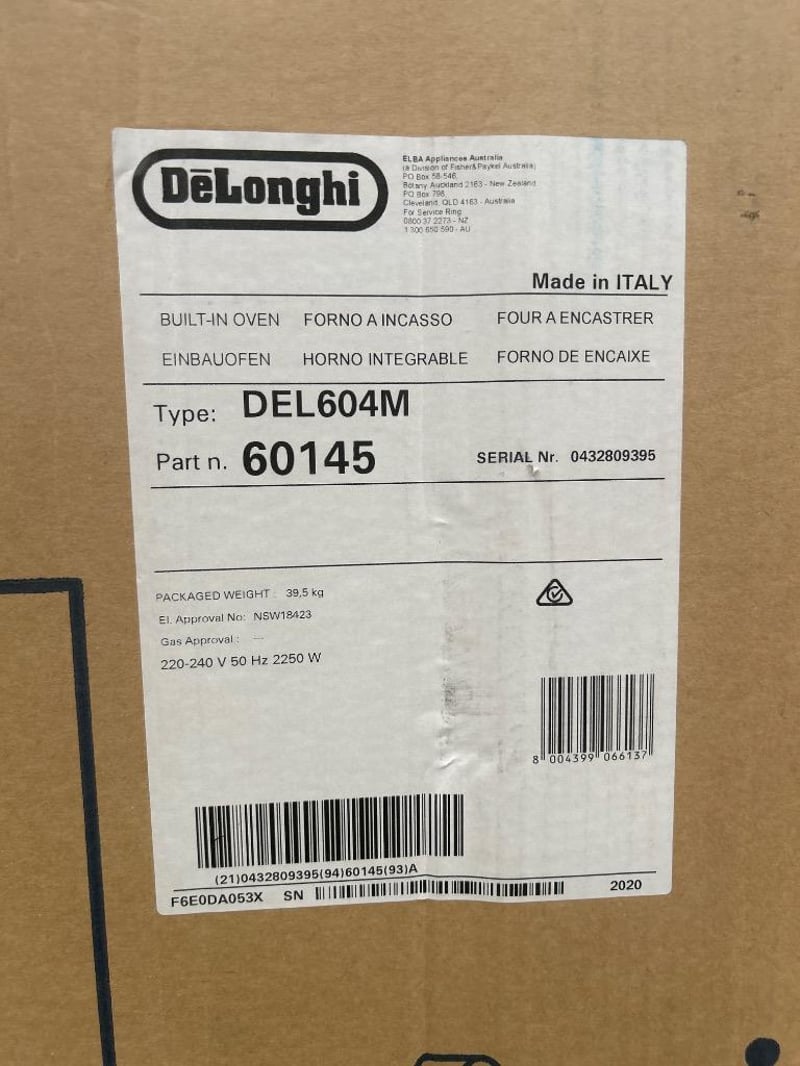 RRP; $499, Delonghi 60cm Electric Built-In Oven hero, Model; DEL604M, stainless steel finish
