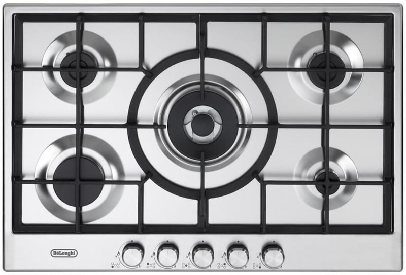 RRP; $899, DeLonghi 75cm Natural Gas Cooktop, model; DEGHSL75, stainless steel finish dimensions approx; H49 x W750 x D510 mm