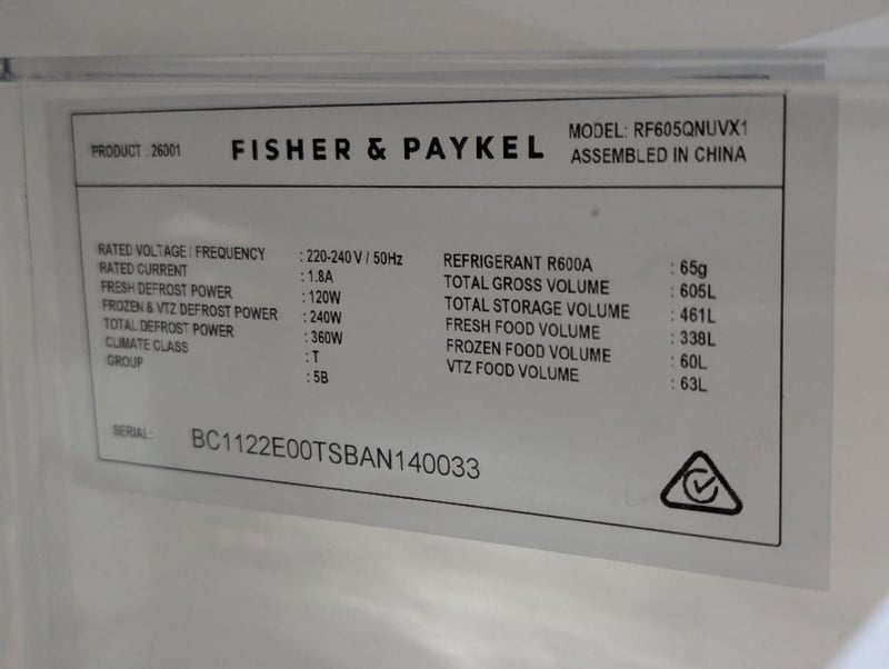 RRP $3099 Fisher & Paykel 538L Quad Door Refrigerator Model : RF605QNUVX1, Serial: BC1122E00TSBAN140033