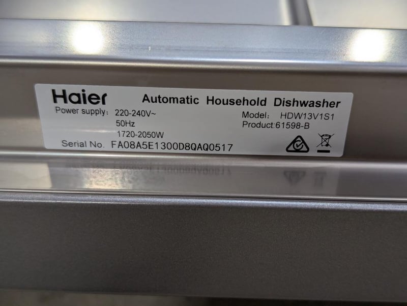 RRP: $659, Haier 300 Series Freestanding Dishwasher, Model: HDW13V1S1, S/N: FA08A5E1300D8QAQ0517Dimensions: Height 850mm x Width 598mm x Depth 598mm