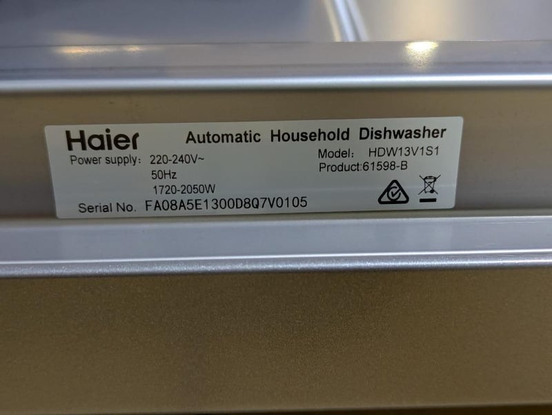 RRP: $659, Haier 300 Series Freestanding Dishwasher, Model: HDW13V1S1, S/N: FA08A5E1300D8Q7V0105
