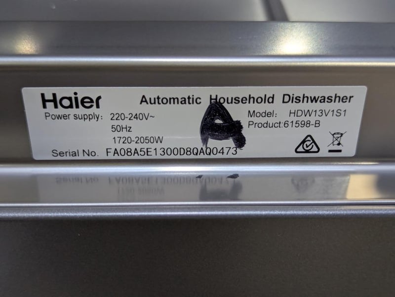 RRP: $659, Haier 300 Series Freestanding Dishwasher, Model: HDW13V1S1, S/N: FA08A5E1300D8QAQ0473Dimensions: Height 850mm x Width 598mm x Depth 598mm