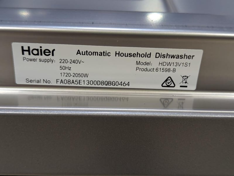 RRP: $659, Haier 300 Series Freestanding Dishwasher, Model: HDW13V1S1, S/N: FA08A5E1300D8QBG0464Dimensions: Height 850mm x Width 598mm x Depth 598mm