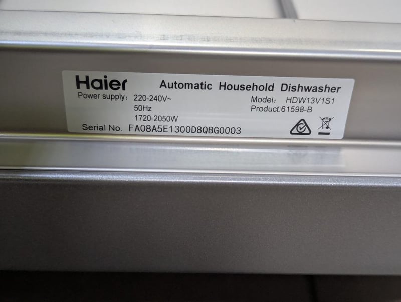 RRP: $659, Haier 300 Series Freestanding Dishwasher, Model: HDW13V1S1, S/N: FA08A5E1300D8QBG0003