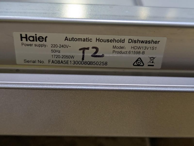 RRP: $659, Haier 300 Series Freestanding Dishwasher, Model: HDW13V1S1, S/N: FA08A5E1300D8QB50258