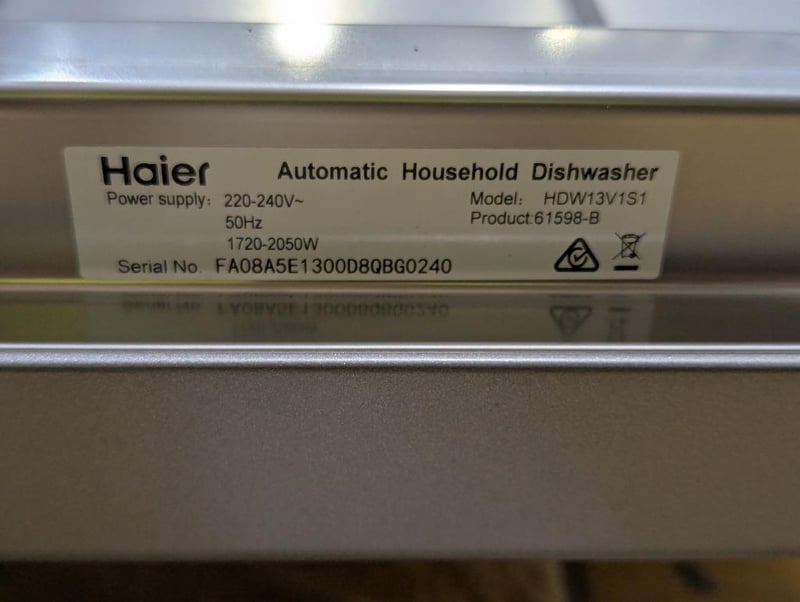RRP: $659, Haier 300 Series Freestanding Dishwasher, Model: HDW13V1S1, S/N: FA08A5E1300D8QBG0240