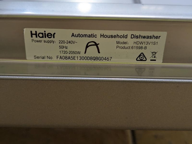 RRP: $659, Haier 300 Series Freestanding Dishwasher, Model: HDW13V1S1, S/N: FA08A5E1300D8QBG0467Dimensions: Height 850mm x Width 598mm x Depth 598mm