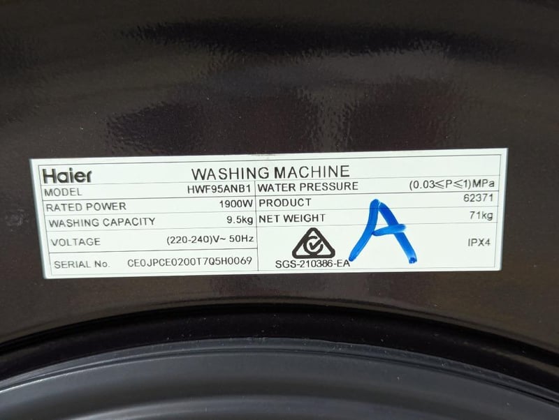 RRP: $1099, Haier 9.5kg 500 Series Front Loader Washing Machine, Model: HWF95ANB1, S/N: CEOJPCE0200T7Q5H0069Dimensions: Height 850mm x Width 595mm x Depth 688mm
