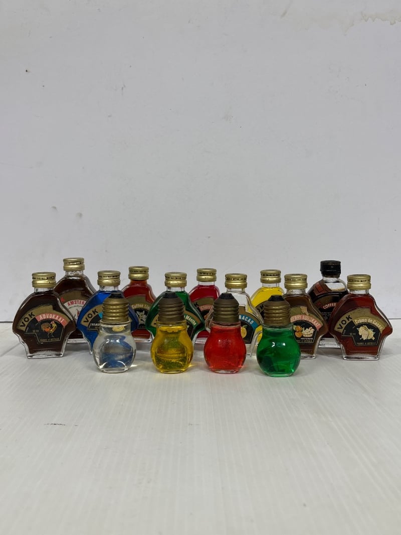 Assorted lot of miniature liqueur bottles, including Vok Liqueurs and more qty 15 Sold as lot