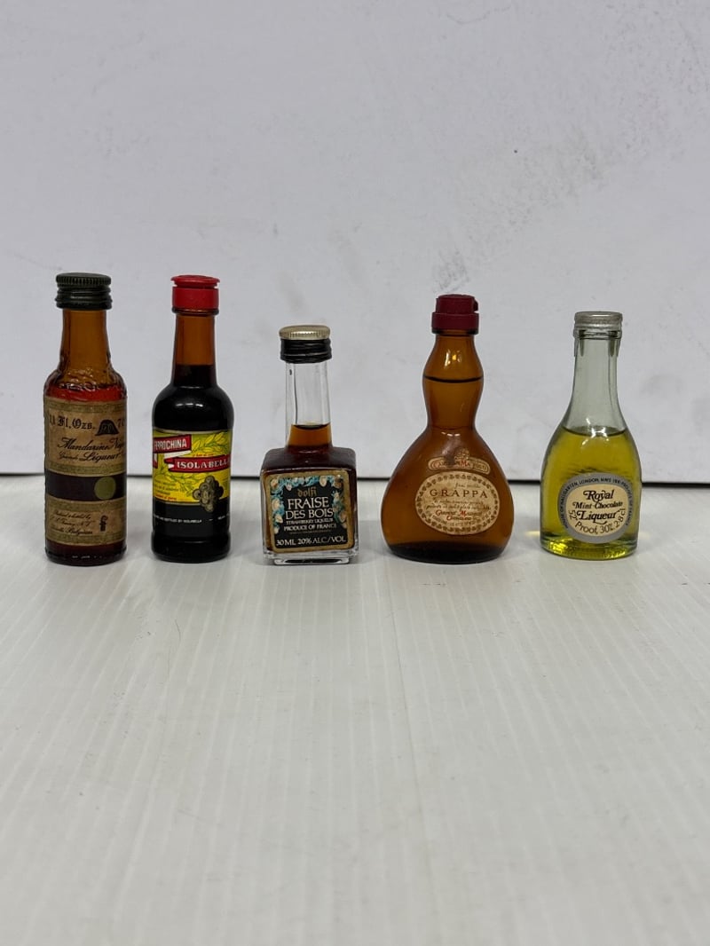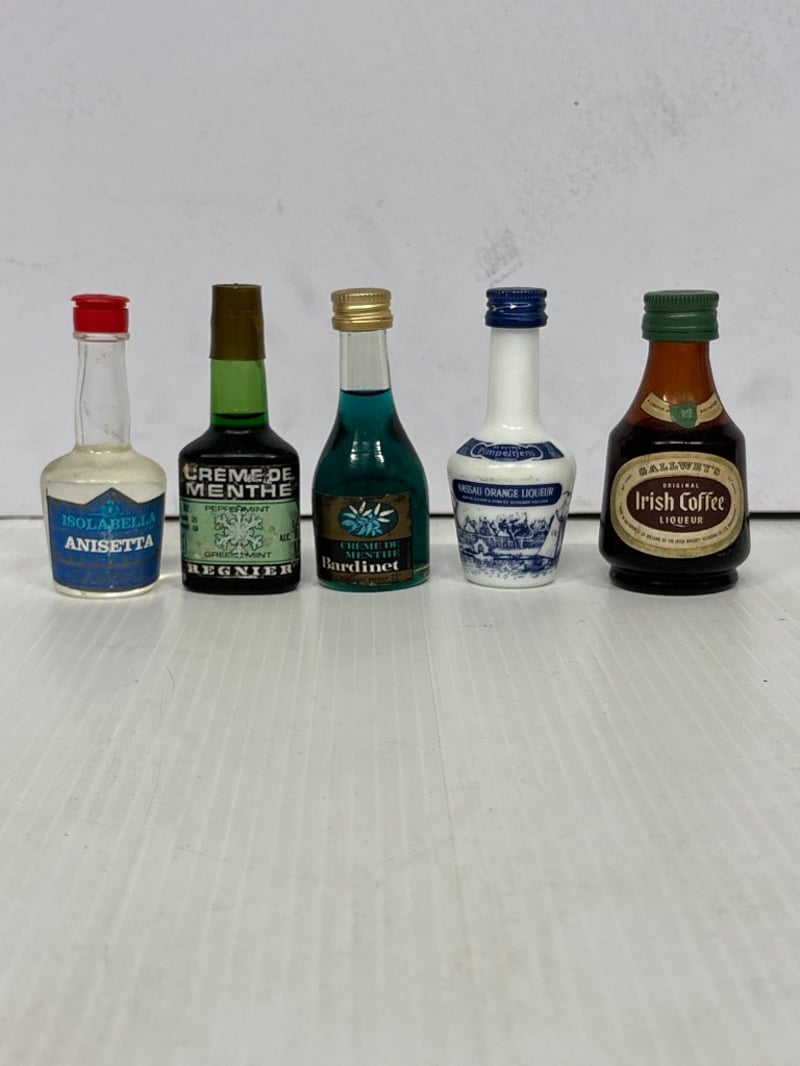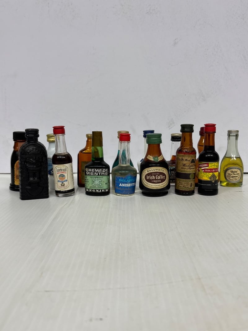 Assorted lot of miniature liqueur bottles, including Gallwey’s Irish Coffee, Crème de Menth, Kahlua and more qty 15