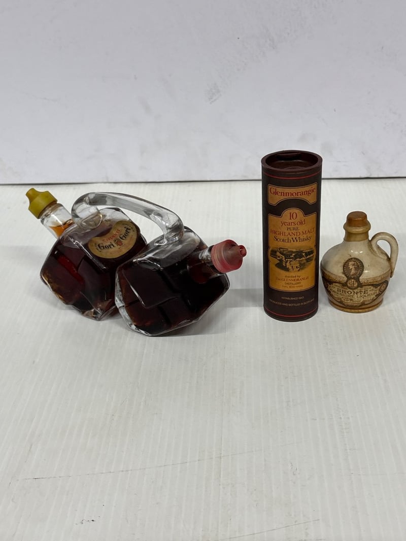 Assorted lot of miniature liqueur bottles, including Whisky’s, Brandy, Chianti Gori Gori and more