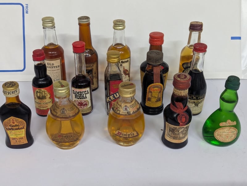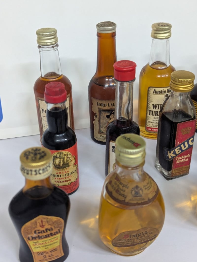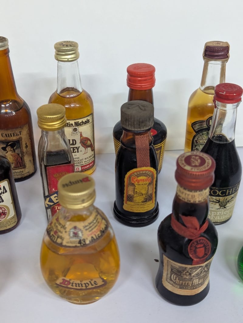Assorted lot of miniature liqueur bottles, including Wild Turkey, Tia Maria, Kahlua and more qty 15