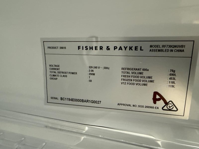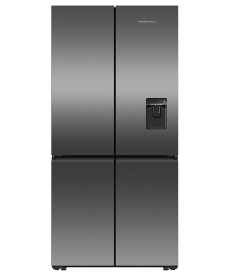 RRP; $4,399, Fisher & Paykel 690L Series 7 Quad Door Refrigerator Freezer, model; RF730QNUVB1, black stainless steel finish