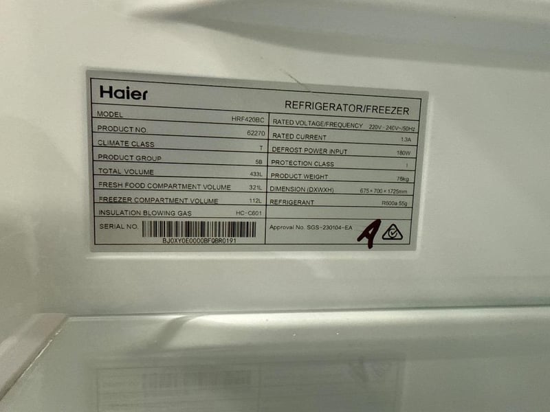 RRP; $1,199, Haier 433L 500 Series Refrigerator Bottom Freezer, model; HRF420BC, black finish
