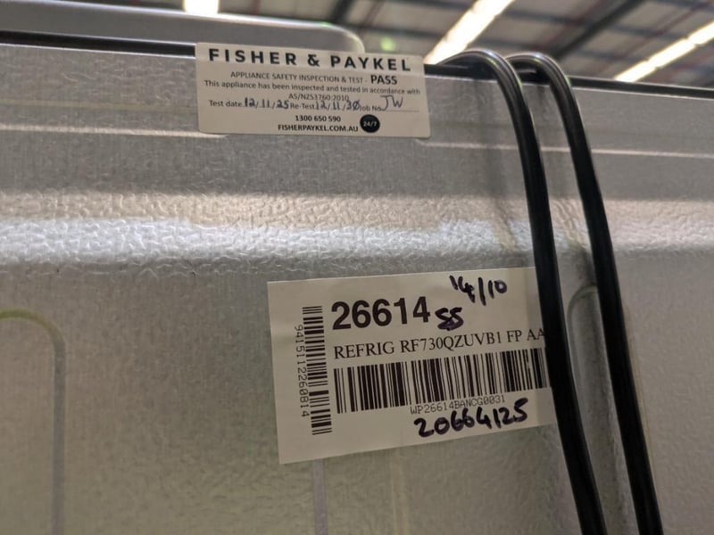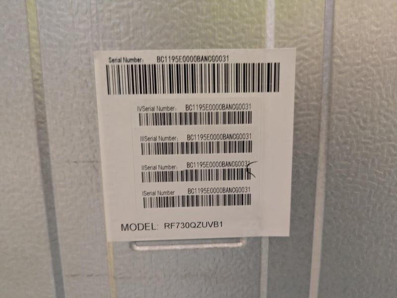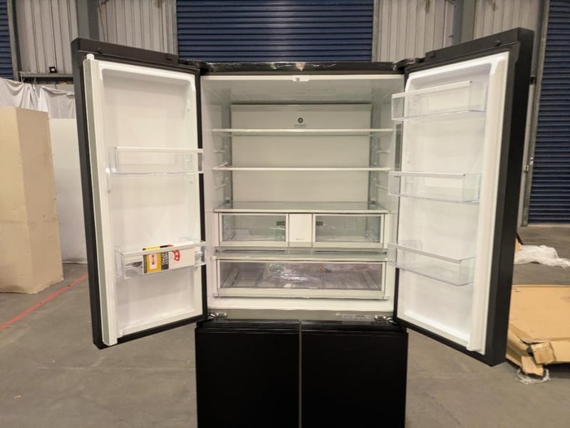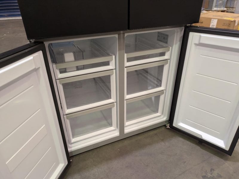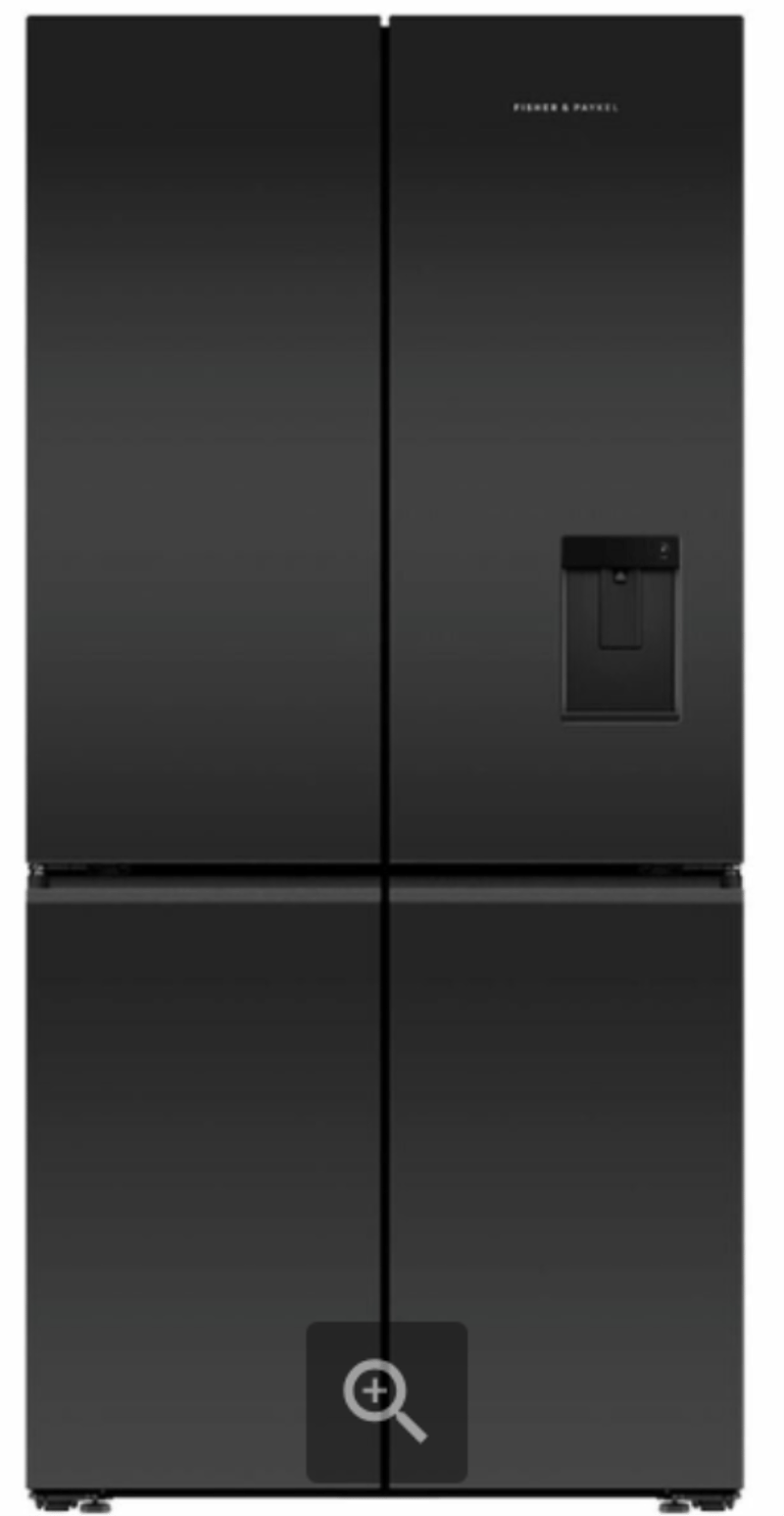 RRP $5038 Fisher & Paykel Series 7 690L Quad Door Refrigerator with Ice and Water Matte Black Glass Approx. Dimensions Height 190cm Width 90.5cm Depth 74. 8cm Model# RF730QZUVB1 Serial#BC1195E0000BANCG0031