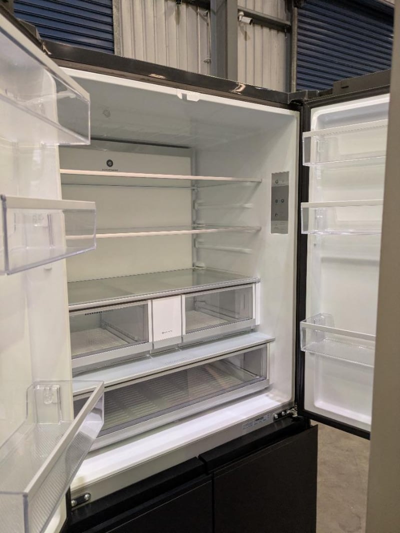 RRP $5038 Fisher & Paykel Series 7 690L Quad Door Refrigerator with Ice and Water Matte Black Glass Approx. Dimensions Height 190cm Width 90.5cm Depth 74. 8cm Model# RF730QZUVB1 Serial#BC1195E0000BAR4A0041