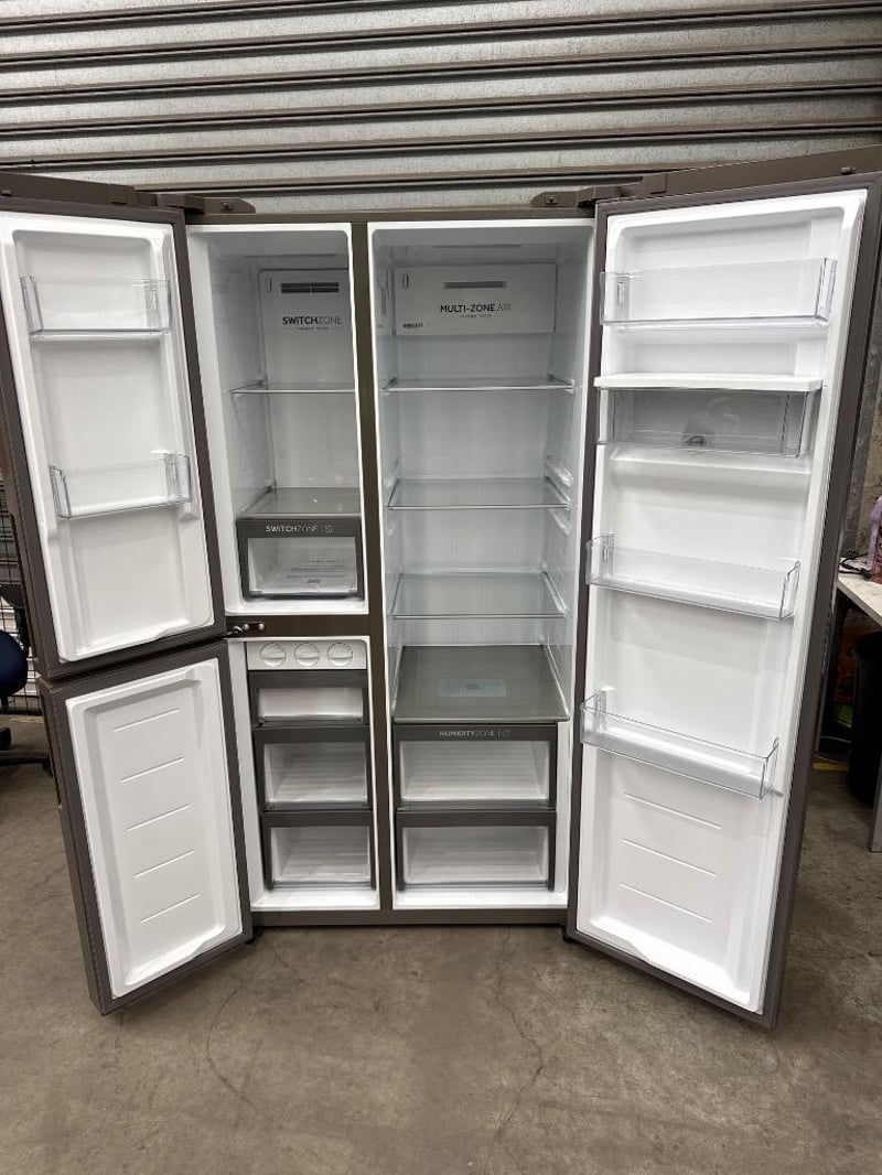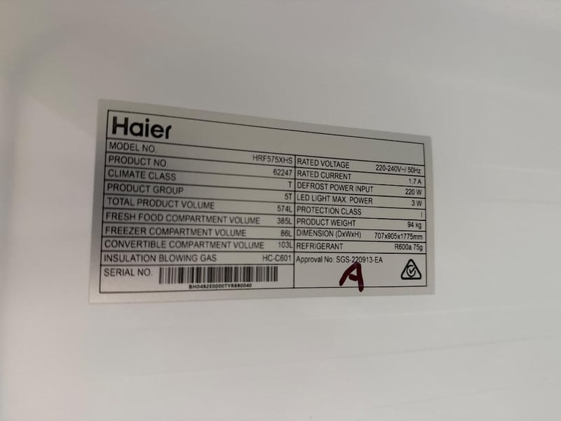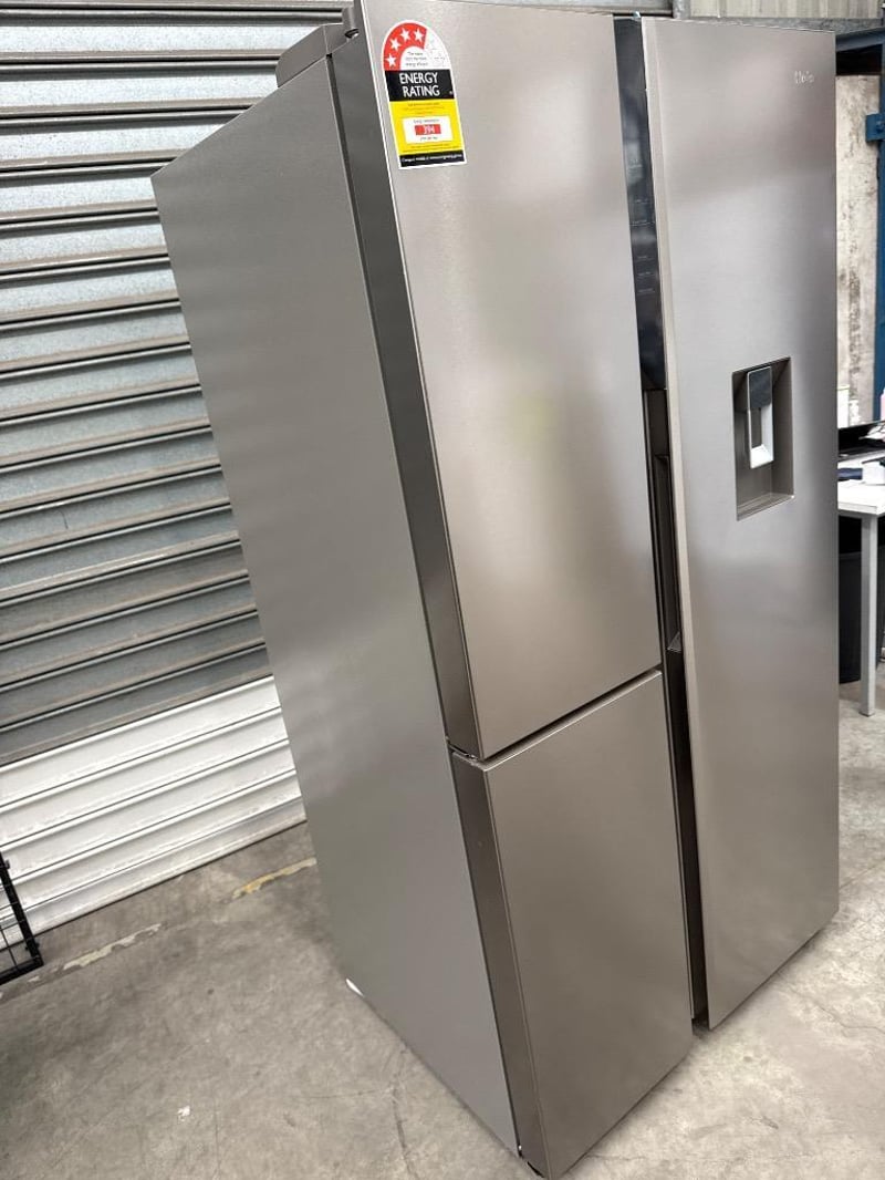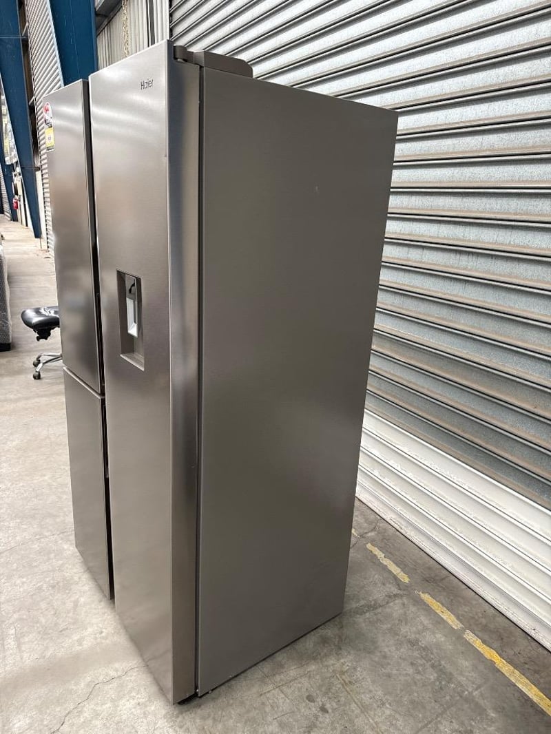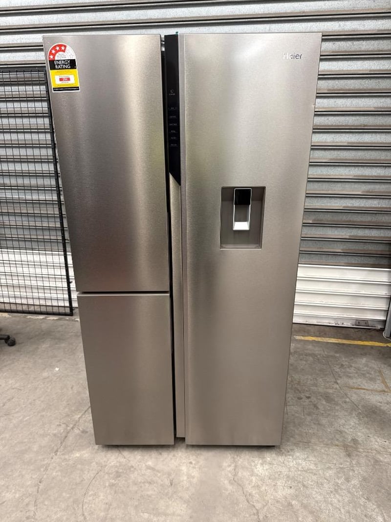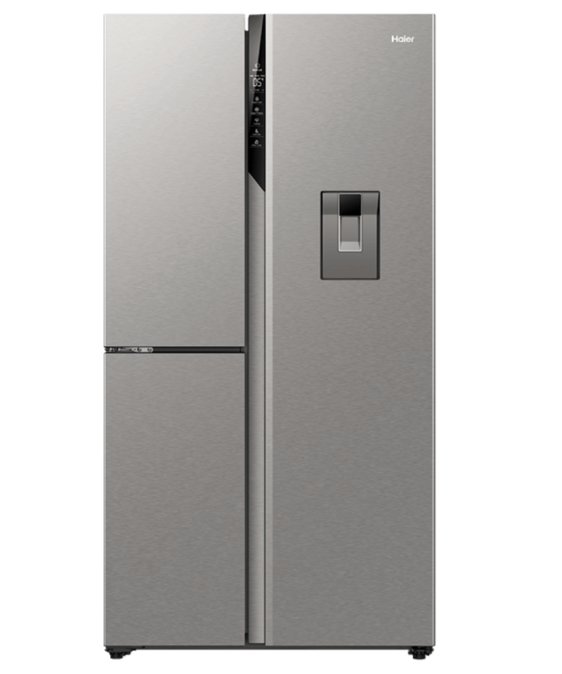 RRP; $1,999, Haier 574L 500 Series S+ Three-Door Side-by-Side Refrigerator Freezer Dimensions; H1775mm x W905mm x D707mm Model; HRF575XHS Features; Satina finish, Recessed handle