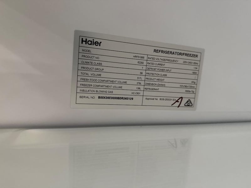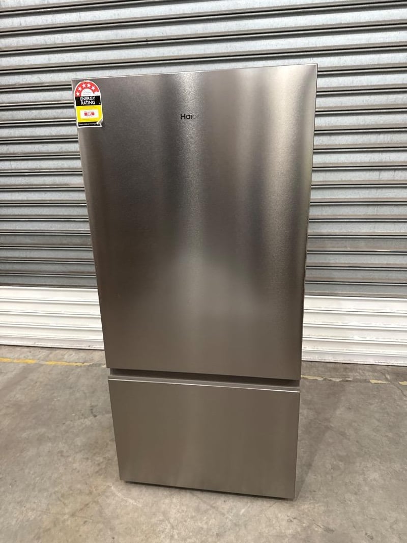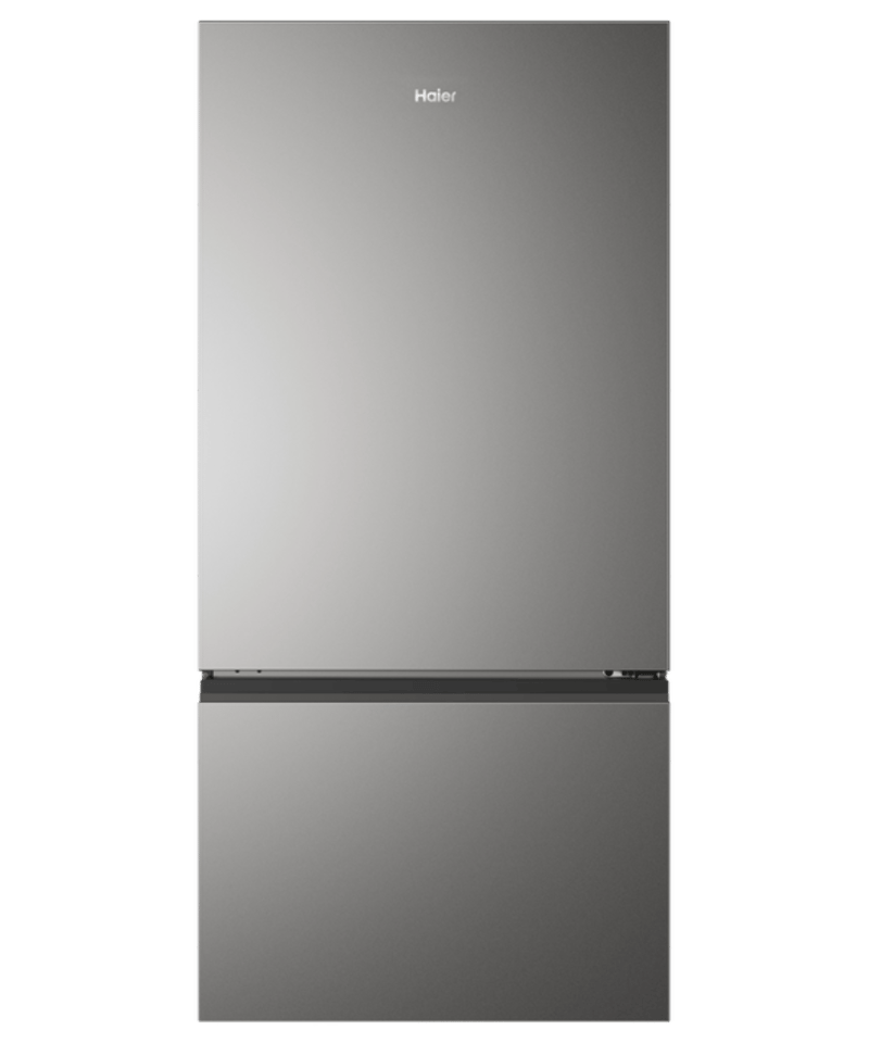 RRP $ 1,599, Haier 517L 500 Series Refrigerator Bottom Freezer dimensions; H1725mm x W790mm x D707mm model; HRF510BS features; satina finish